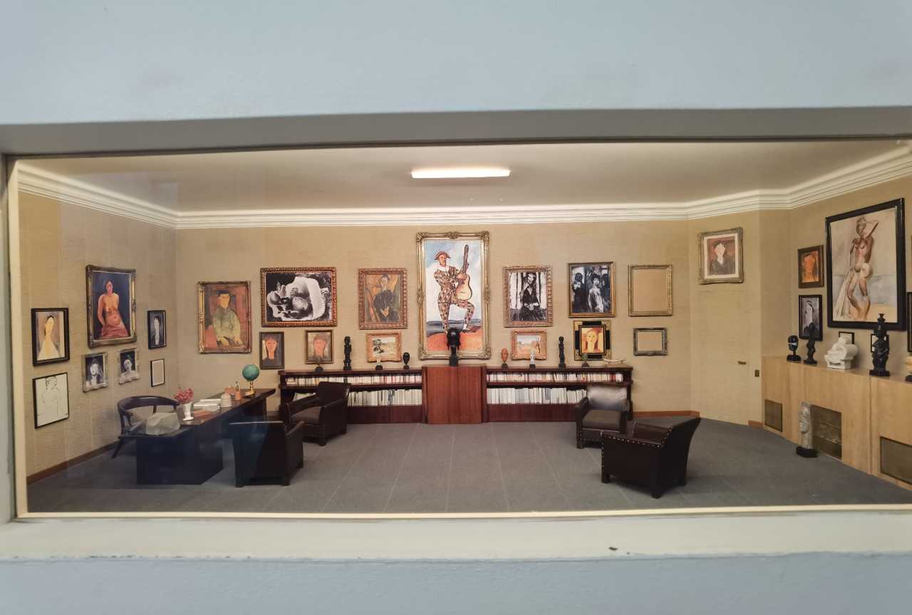 Downstairs is the temporary exhibition hall—worth a look if interested. We found a miniature room downstairs; the walls were hung with the paintings featured in the current exhibition. So fun.