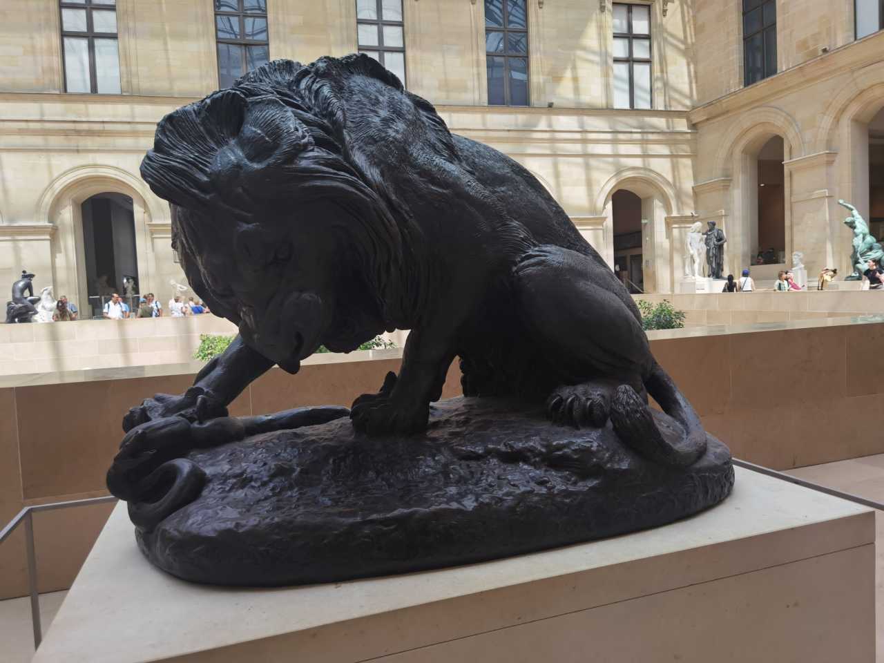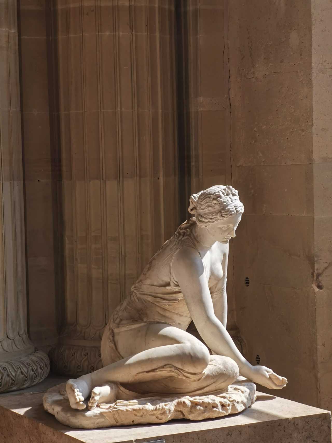 The Richelieu hall displays sculptures from various periods. Its most famous exhibit is the Code of Hammurabi, in a gallery beside the hall—easy to find with the guide. The Richelieu audience is clearly smaller than Denon and Sully—maybe because the three masterpieces are over there, or perhaps by afternoon everyone is exhausted.