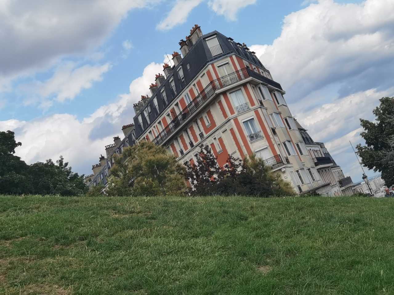 The “tilted house”—whoever thought of this angle is brilliant. You use the steep lawn as the foreground, tilt your phone, and you get this effect. While we were shooting, passing foreigners looked baffled.