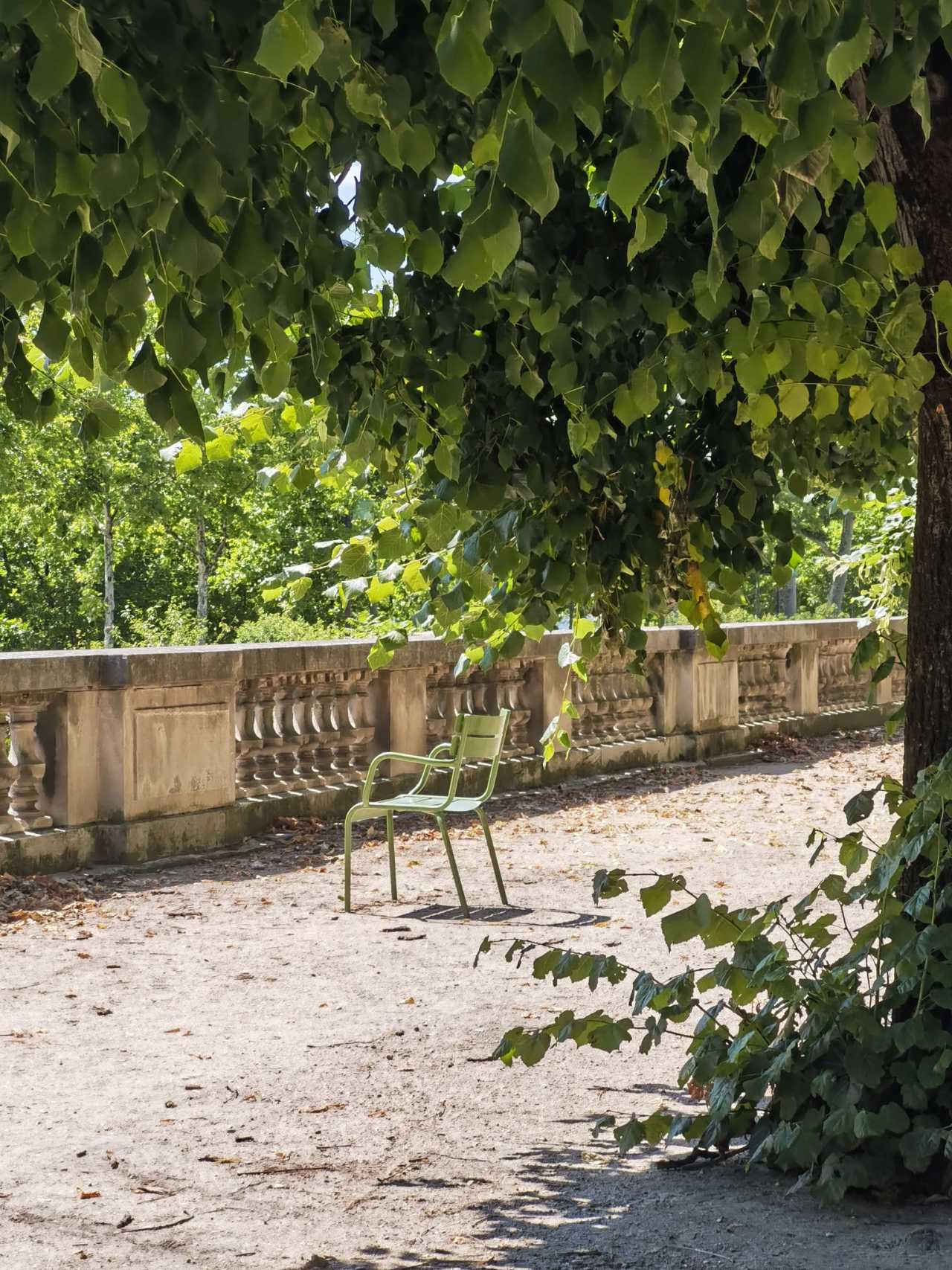 After eating, we strolled along the Seine toward the Orangerie, following navigation through the Tuileries Garden. Past the tree‑lined boulevard is the Orangerie; lots of locals were sunbathing and reading on chairs. The French truly love the sun—most streetside eateries choose outdoor seating even on hot days; AC goes unused. People sit side‑by‑side facing the road, eating and chatting, hhhh.