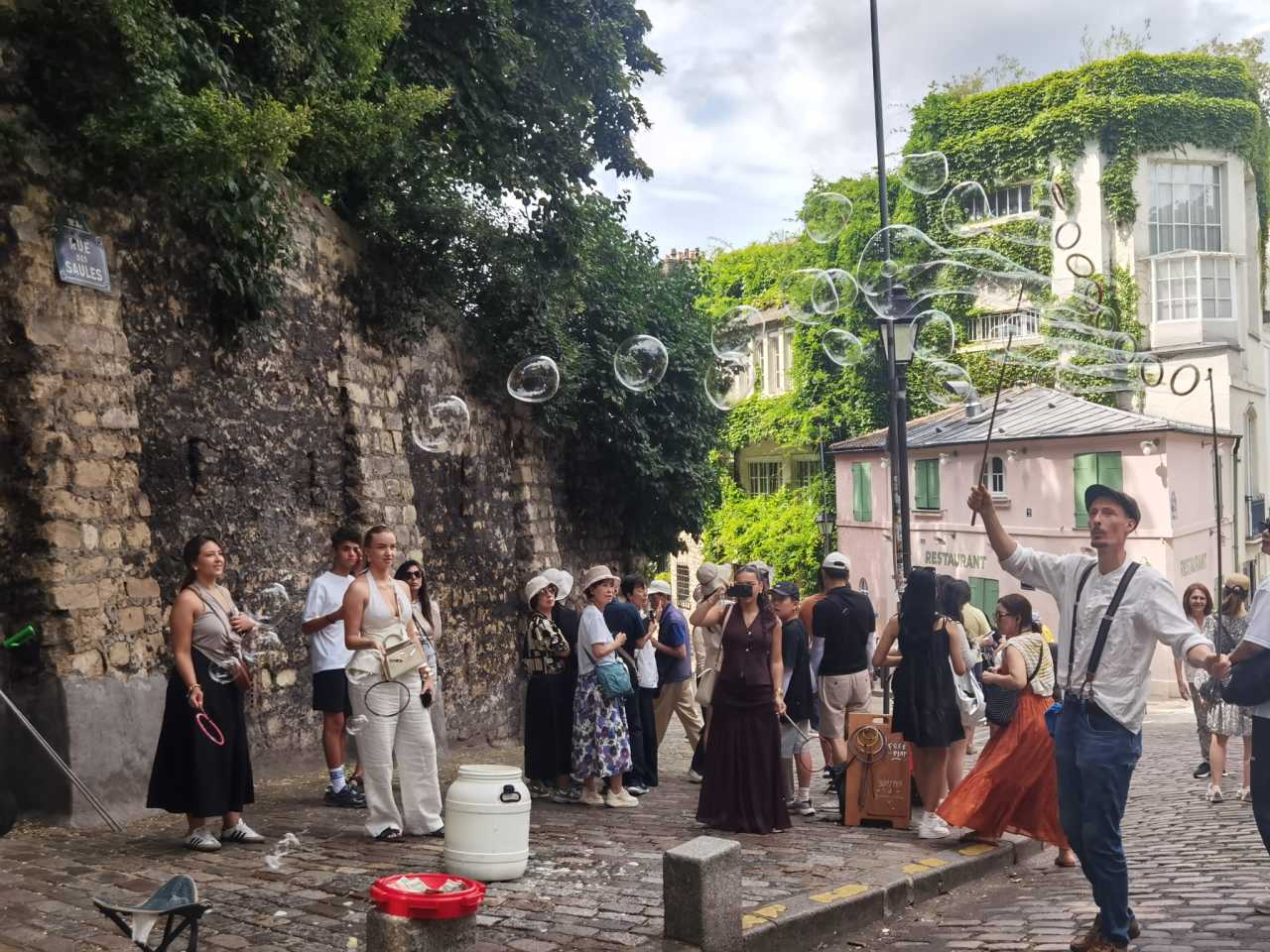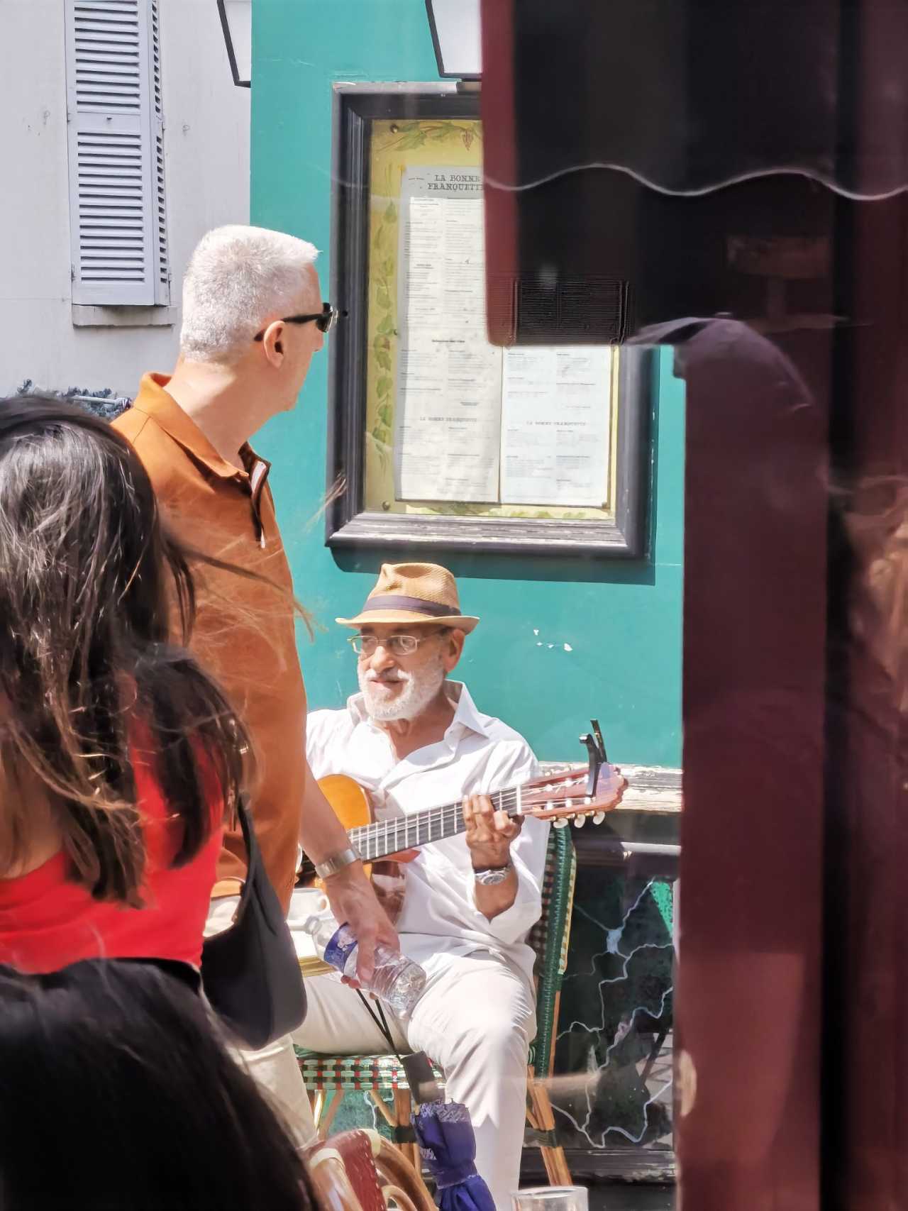 Montmartre is steeped in street art—performers everywhere. While we had afternoon tea, an old gentleman outside a restaurant across the street was playing guitar and singing; the staff seemed familiar with him—perhaps he often sings there in the sun. Later, the guide lady from DALIDA’s residence also came; a group gathered and sang together. After the song, everyone clapped and said “Bravo.” Strangers to each other, but sharing the same joy.