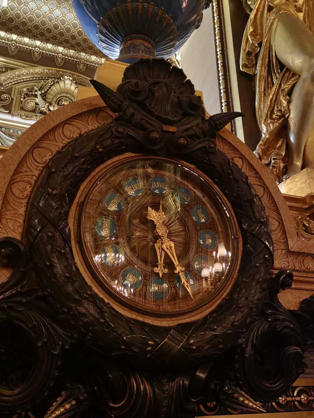 There are many sculptures in the middle of the second floor; photos of that clock from here look great too!