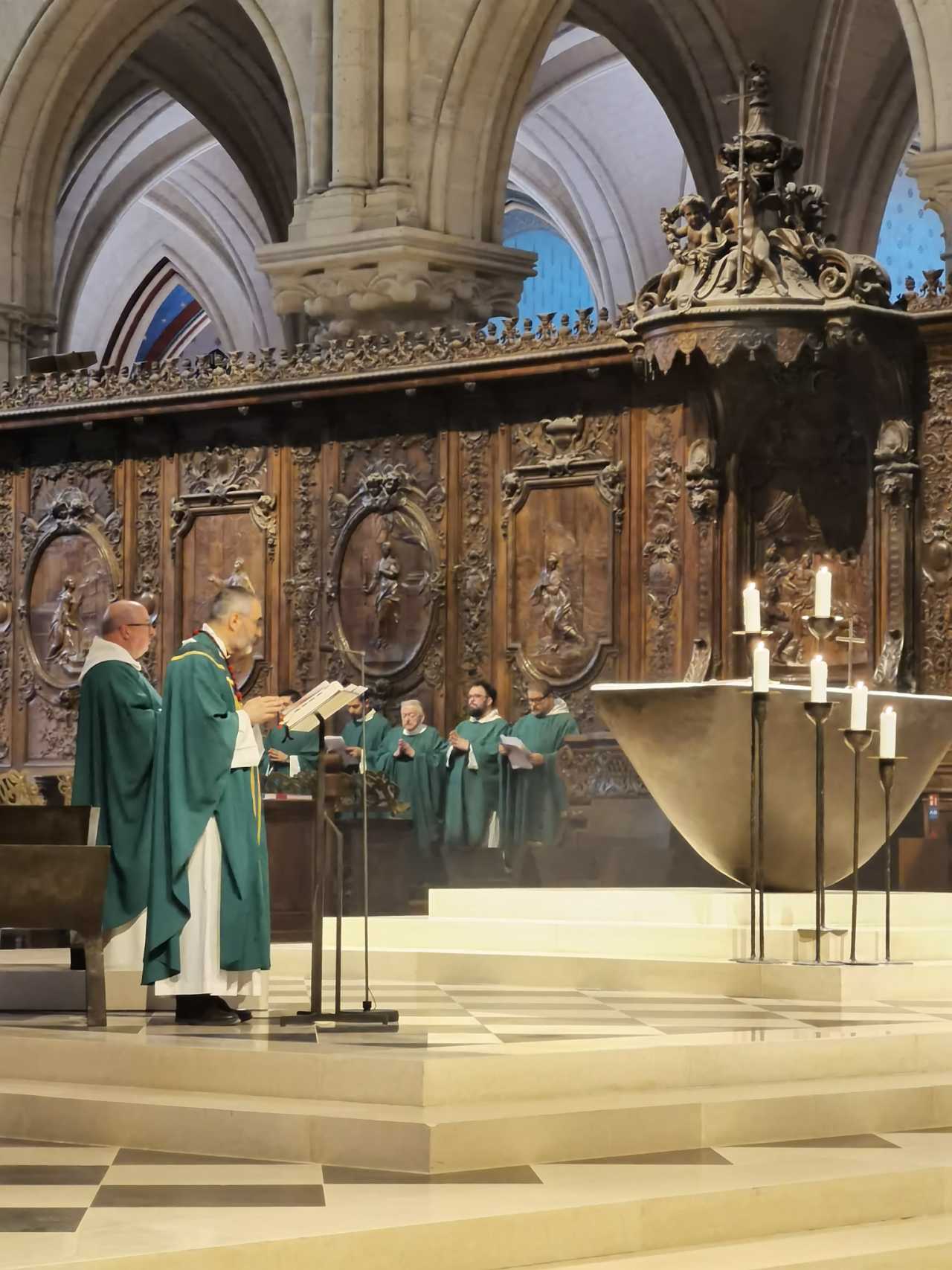 Rebuilt Notre‑Dame is indeed…new (not really, but you know). Still spectacular; the stained glass is beautiful. We also happened upon a mass. Even if you don’t understand it, the atmosphere makes you walk lightly and calm down.