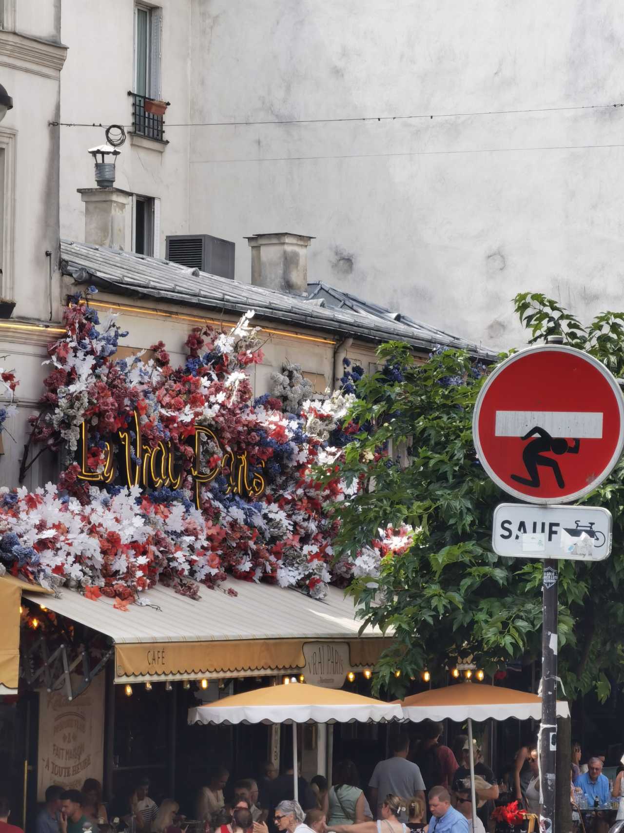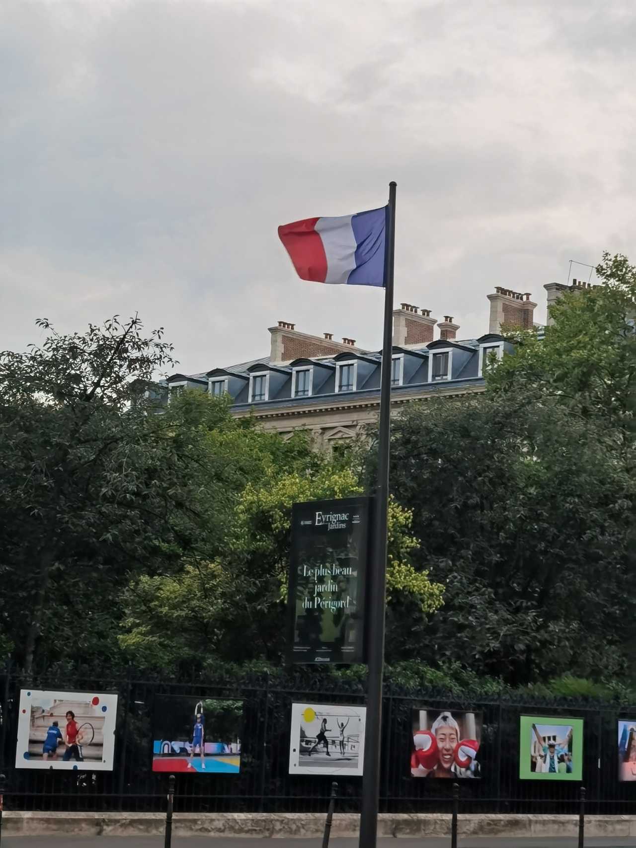 Finally, a shot of the French flag—to commemorate not joining the National Day crowds. In the morning on the way to the opera house, we saw soldiers returning by bus after the parade and a few armored vehicles. Some people were taking photos with the soldiers, hhh.