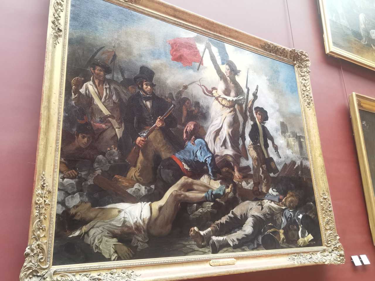 Nearby are corridors full of paintings. In the red‑walled room you’ll find The Raft of the Medusa and Liberty Leading the People.
