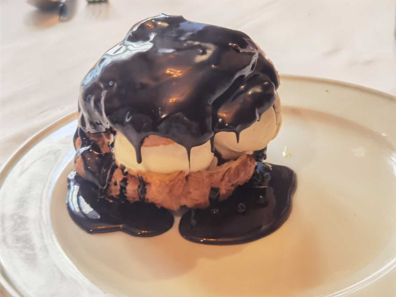 Freshly poured chocolate with a scoop of ice cream in the middle—delicious!