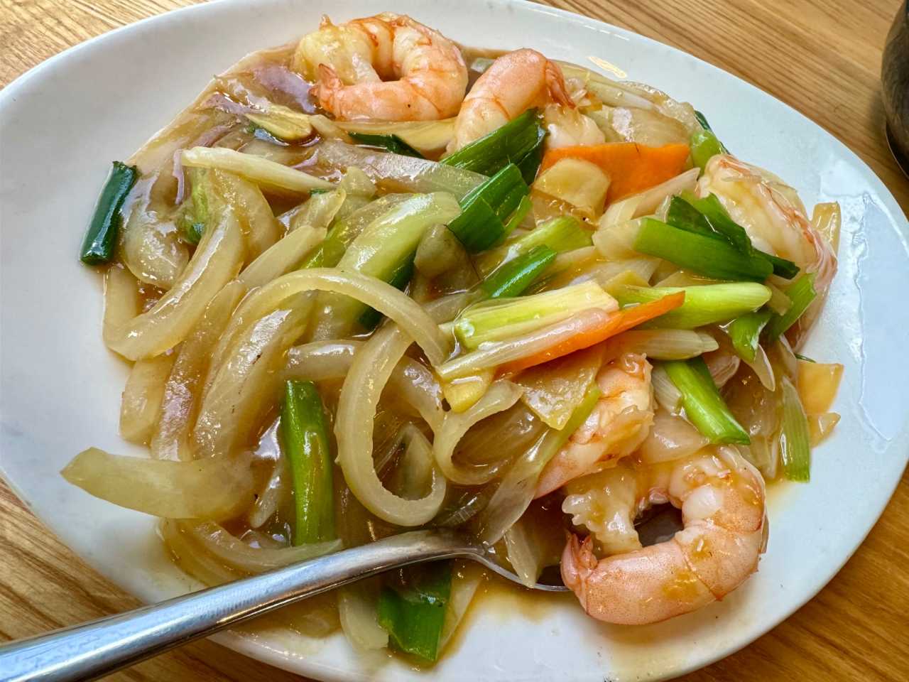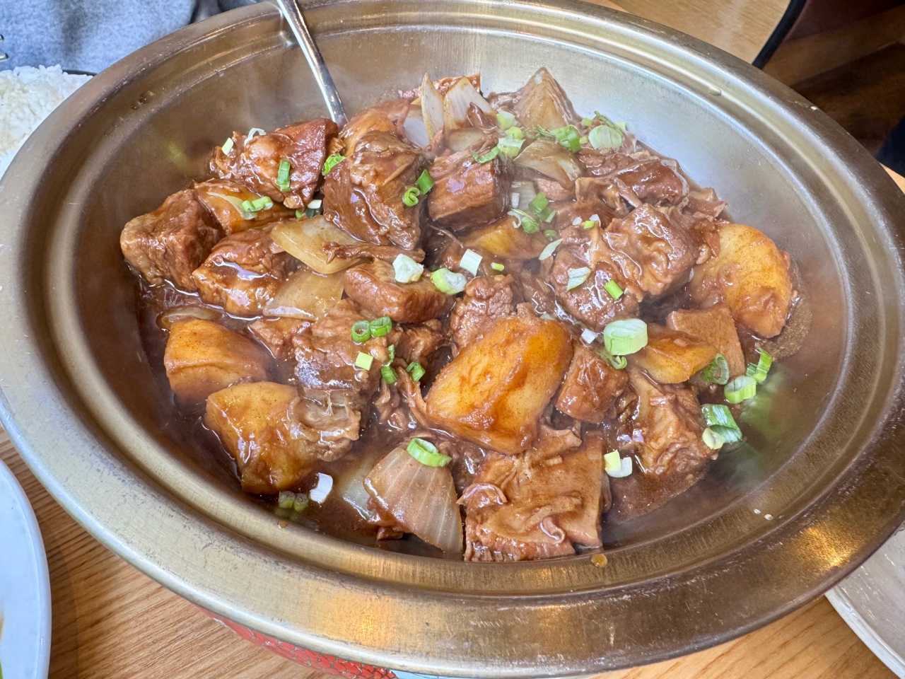 We also found a Chinese restaurant in Reykjavik called Jimmy Express. The food was decent but we had issues with cleanliness – the utensils still had food residue from previous customers. The ginger and onion prawns were quite good with fresh, bouncy shrimp meat, while the potato stewed beef was average.