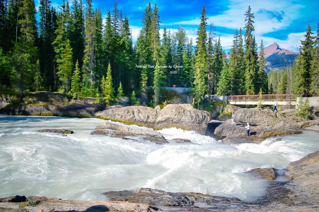Natural Bridge is a “bridge” naturally formed by hard rock, spanning the turbulent Kicking Horse River. This was originally a waterfall. Over thousands of years, the river water continuously eroded the rock, gradually hollowing out the softer parts, eventually forming today’s “bridge” – a naturally formed stone arch, with water flowing underneath, like a work carefully carved by nature with a sculpting knife.