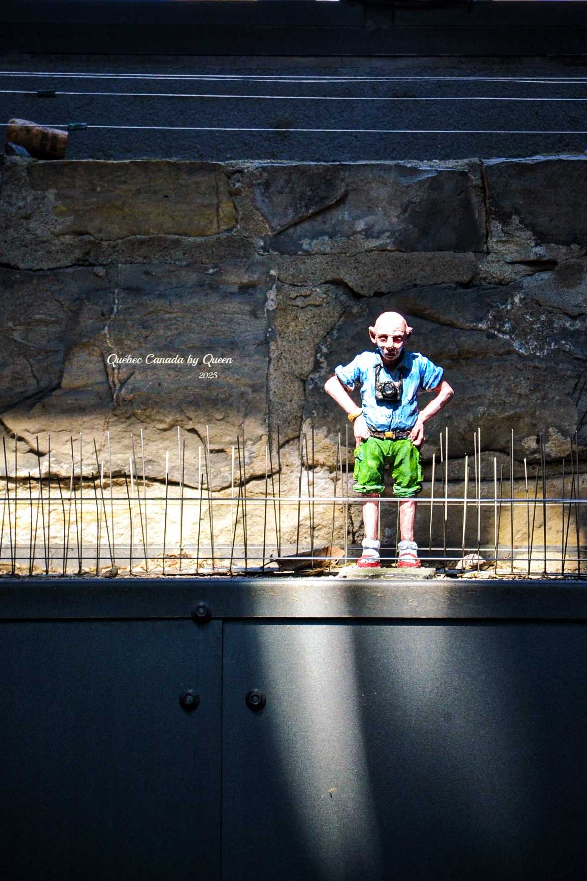 One of the most interesting urban details in Quebec’s old town is those small bronze statues, usually called “the man on the eaves” (L’homme au regard perçant), or simply nicknamed “Quebec roof killer brother” by tourists.