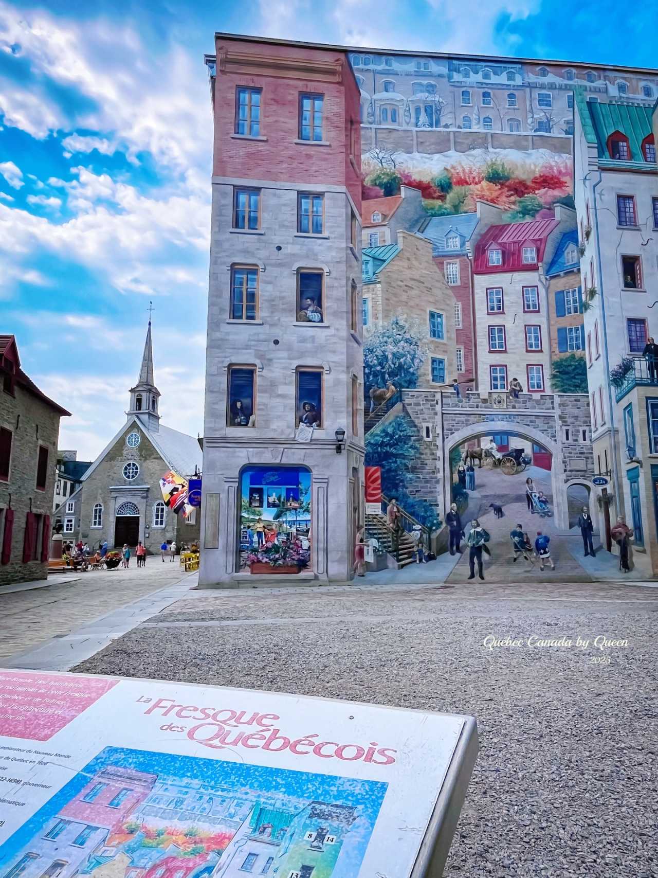 Walking to the end of the street, don’t miss that extremely famous Fresque des Québécois (“Quebec Mural”). This giant mural is three stories high, depicting not only the development history of this city but also cleverly “hiding” many local historical figures, artists, and citizens, with reality and illusion interwoven.