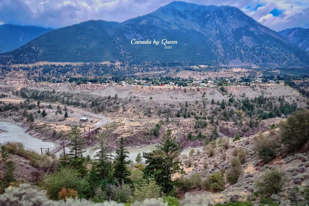 At first, Kamloops is surrounded by dry hills and golden grasslands, with sparse shrubs dotted among them, the surface bearing the desolation and warm tones of the inland plateau. As the journey progresses, the mountains gradually rise higher, the valleys become deeper, and pine forests begin to replace the open grass slopes. Along Fraser River and Thompson River, the river flows in steep canyons, the mountain walls expose gray-black rock layers, revealing geological power.