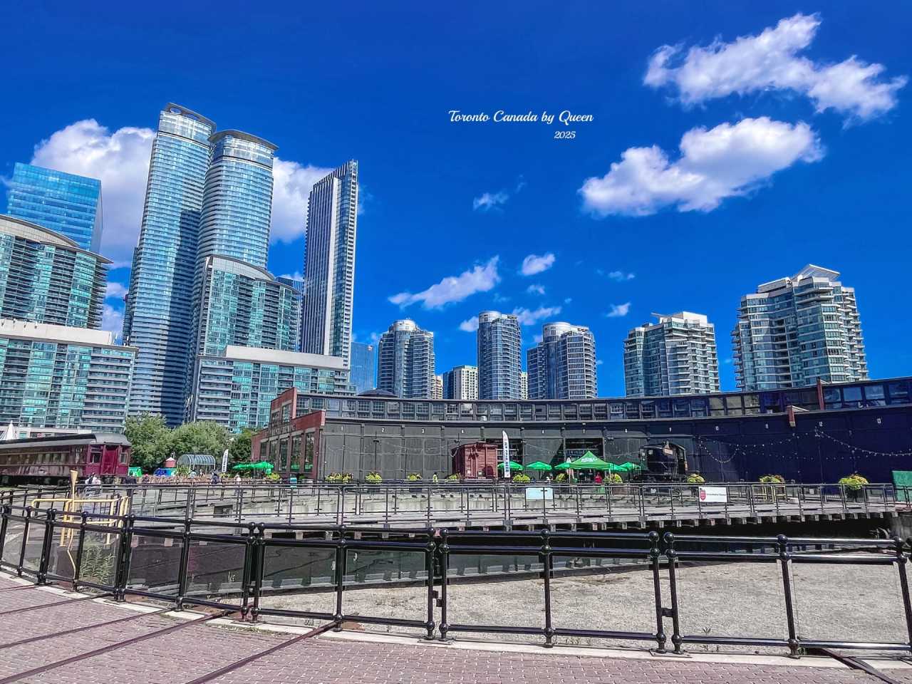 Walking to the other side of the tower, I discovered an area that made me stop for a long time – Roundhouse Park, a circular garage composed of railway tracks and old train cars. It used to be the main facility for train maintenance and turning, but now it has become the location for exhibition halls, craft shops and a small brewery. Standing among these historical relics, looking up at the modern glass and steel tower – CN Tower, in that instant, it felt as if the past and present were overlapping here.