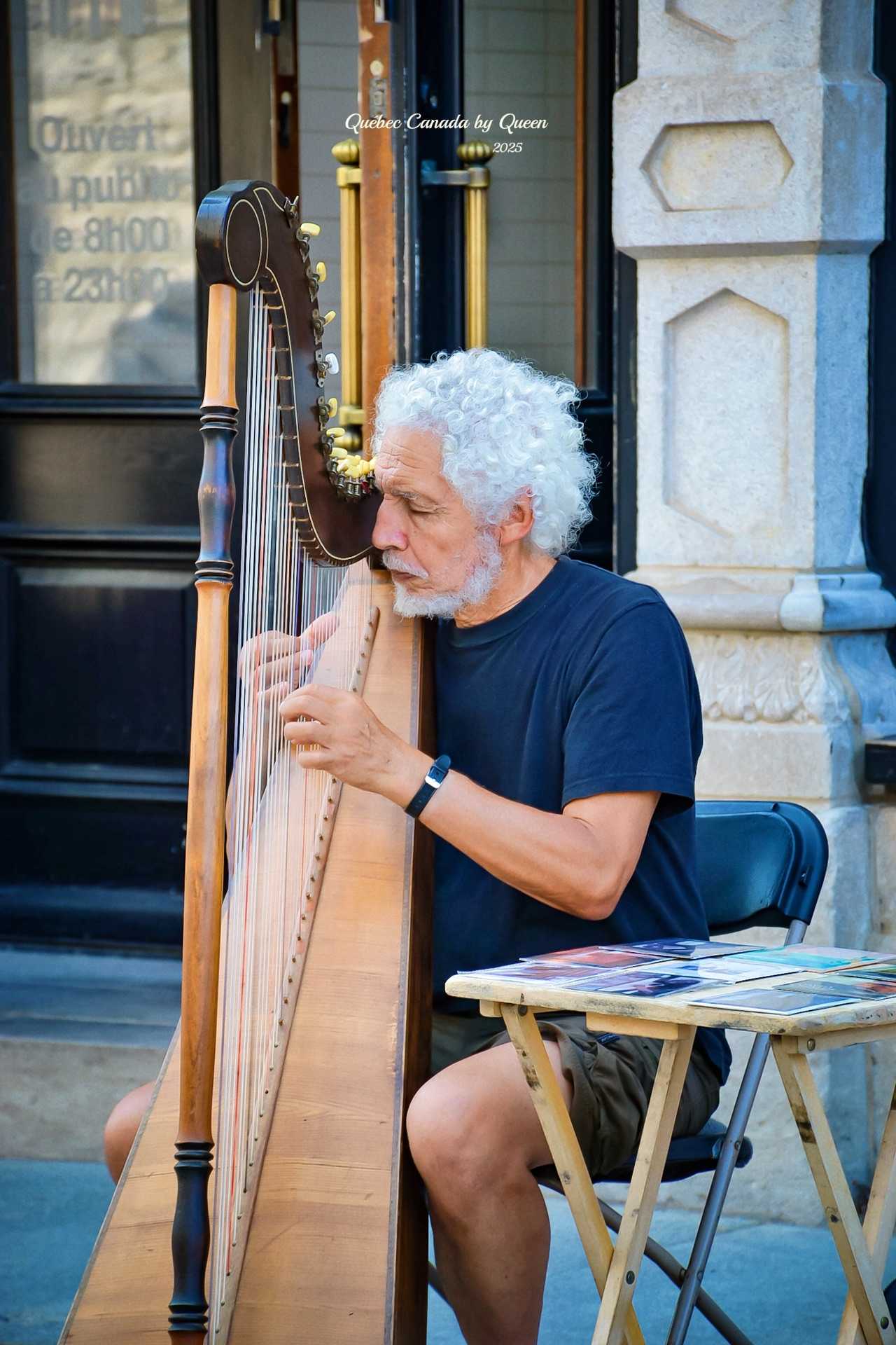 Besides the “killer brother,” I also met a white-haired old man playing the harp in the square, a very famous street performer in Quebec’s old town. He has a gentle temperament, snow-white hair, and neat clothes, with a quiet and transcendent presence – what’s more special is that he actually appeared in the Korean drama “Goblin: The Lonely and Great God,” becoming the “Quebec impression” in the hearts of many movie fans.