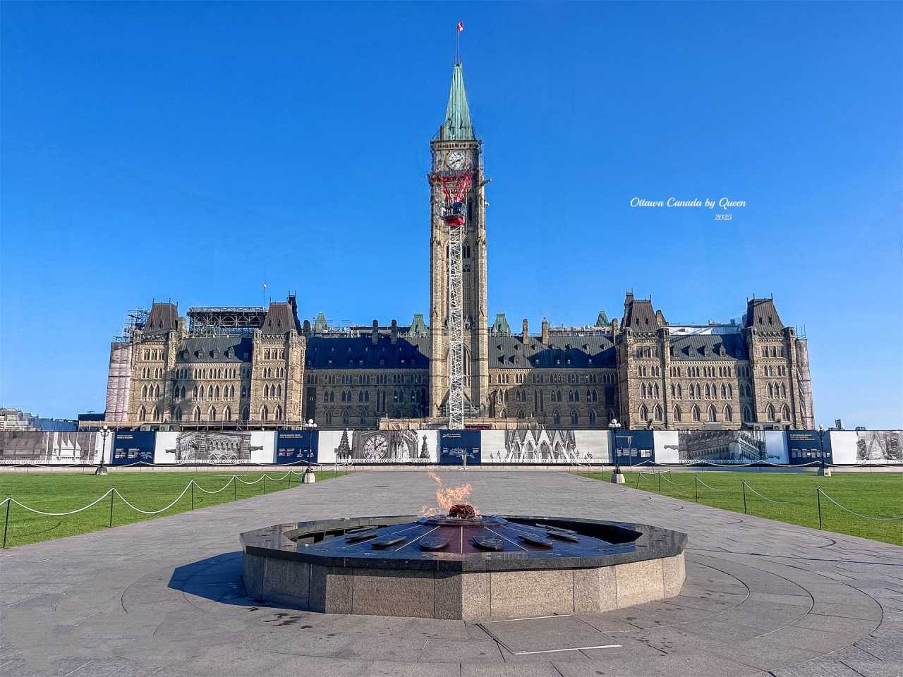 Parliament Hill is the core of the entire city. The building complex itself is like a castle woven from stone, with Gothic Revival-style towers, spires and carved details appearing particularly solemn under the blue sky.