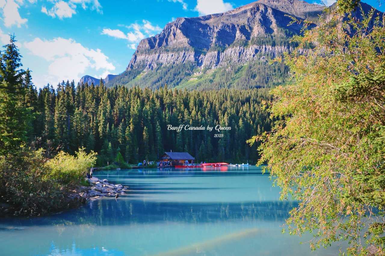 From the mountain road into Yoho National Park, through a forest highway, when the lake water first flashes through the gaps in the trees, Lake Emerald appears like a surprise without warning, quietly lying in the arms of the mountains – the lake surface is as smooth as a mirror, the color like a real emerald.