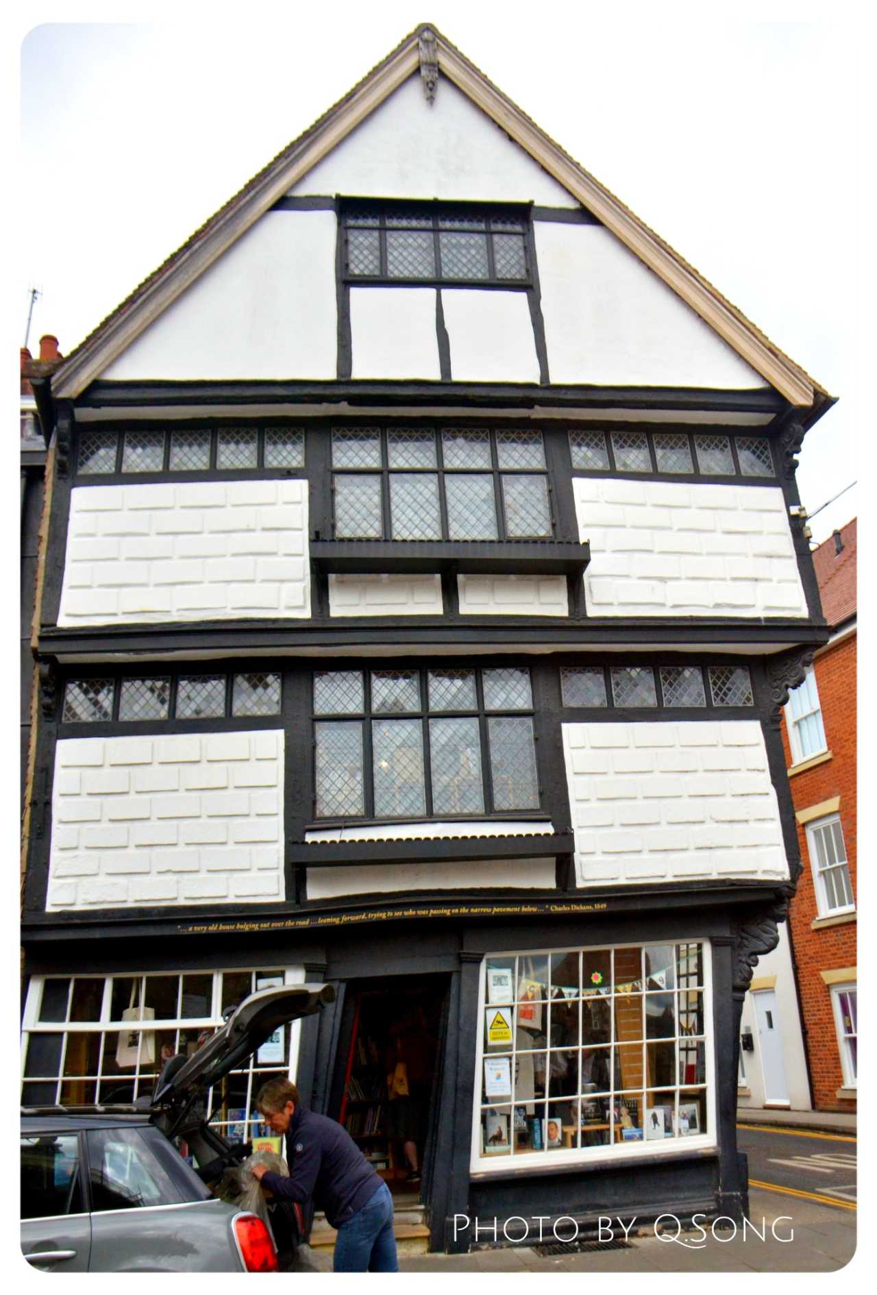 It’s said Dickens found inspiration for “David Copperfield” here. A quote on the door reads: “…a very old house bulging over the road… leaning forward, trying to see who was passing on the narrow pavement below…”