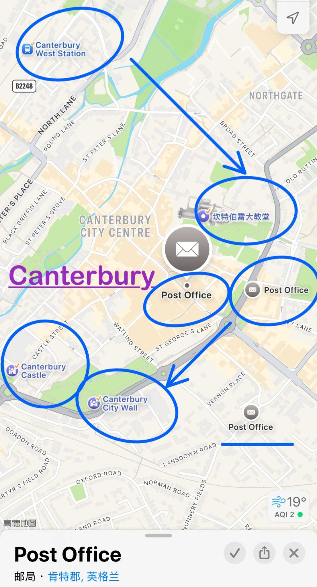 Westgate GardenFrom the garden, head to Canterbury’s main street—lots of small shops to browse if you have time. There’s a post office upstairs in a bookstore-like place; look carefully or you’ll miss it.