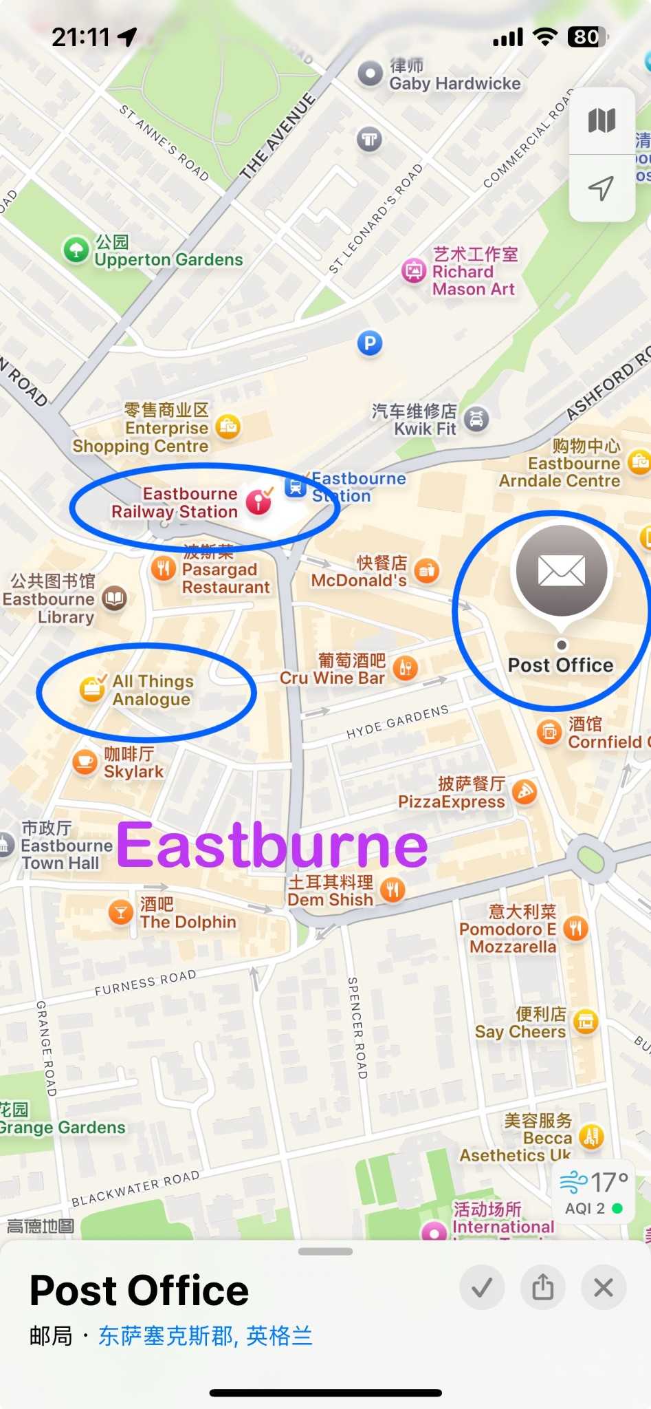 Location of Eastbourne Post Office