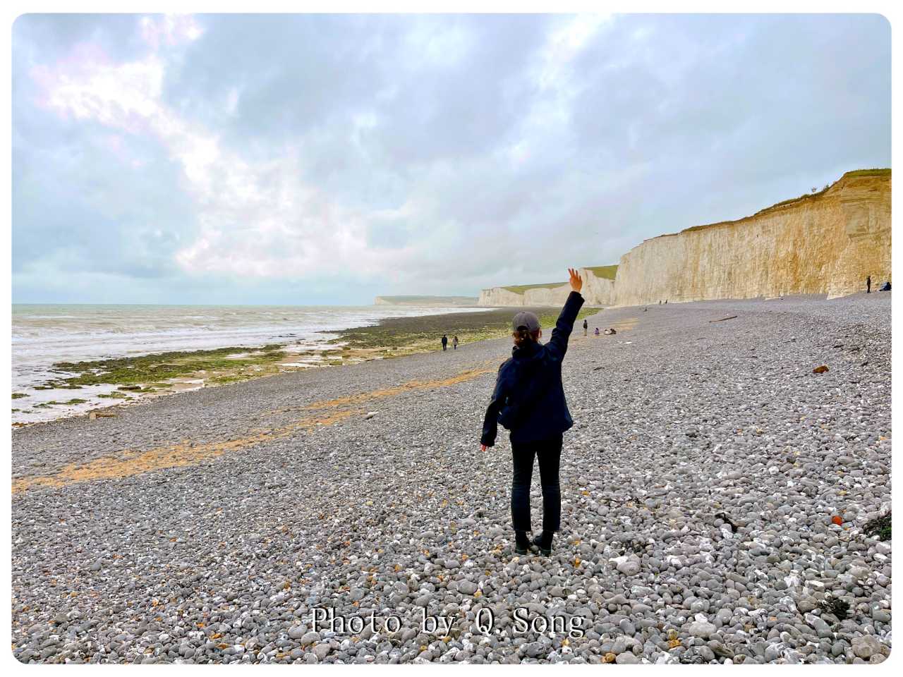 Touching the chalk cliff face up close.
