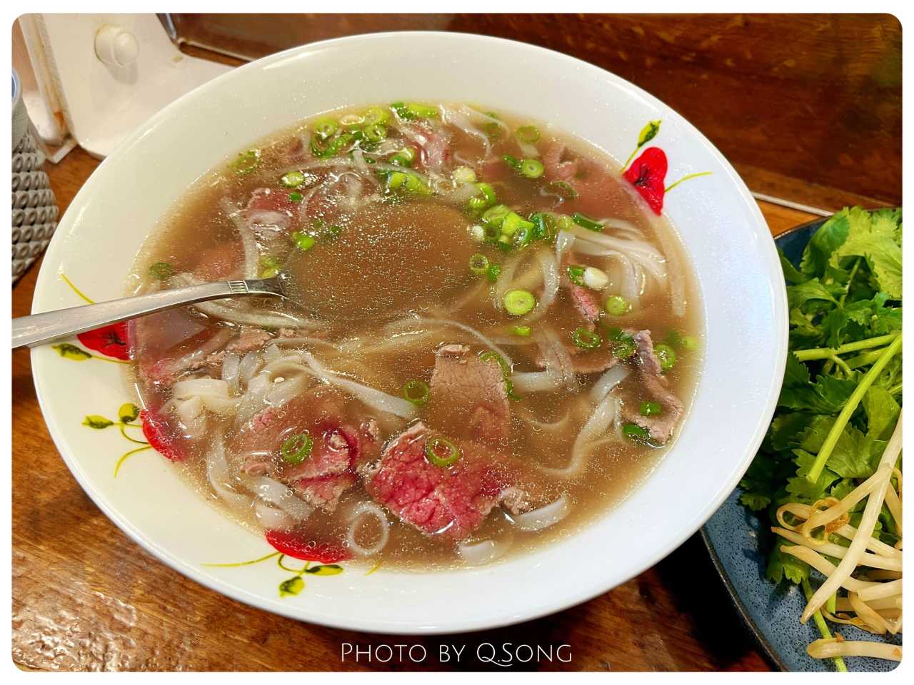 Thin raw beef cooked by the hot broth—tender texture, super savory soup~
