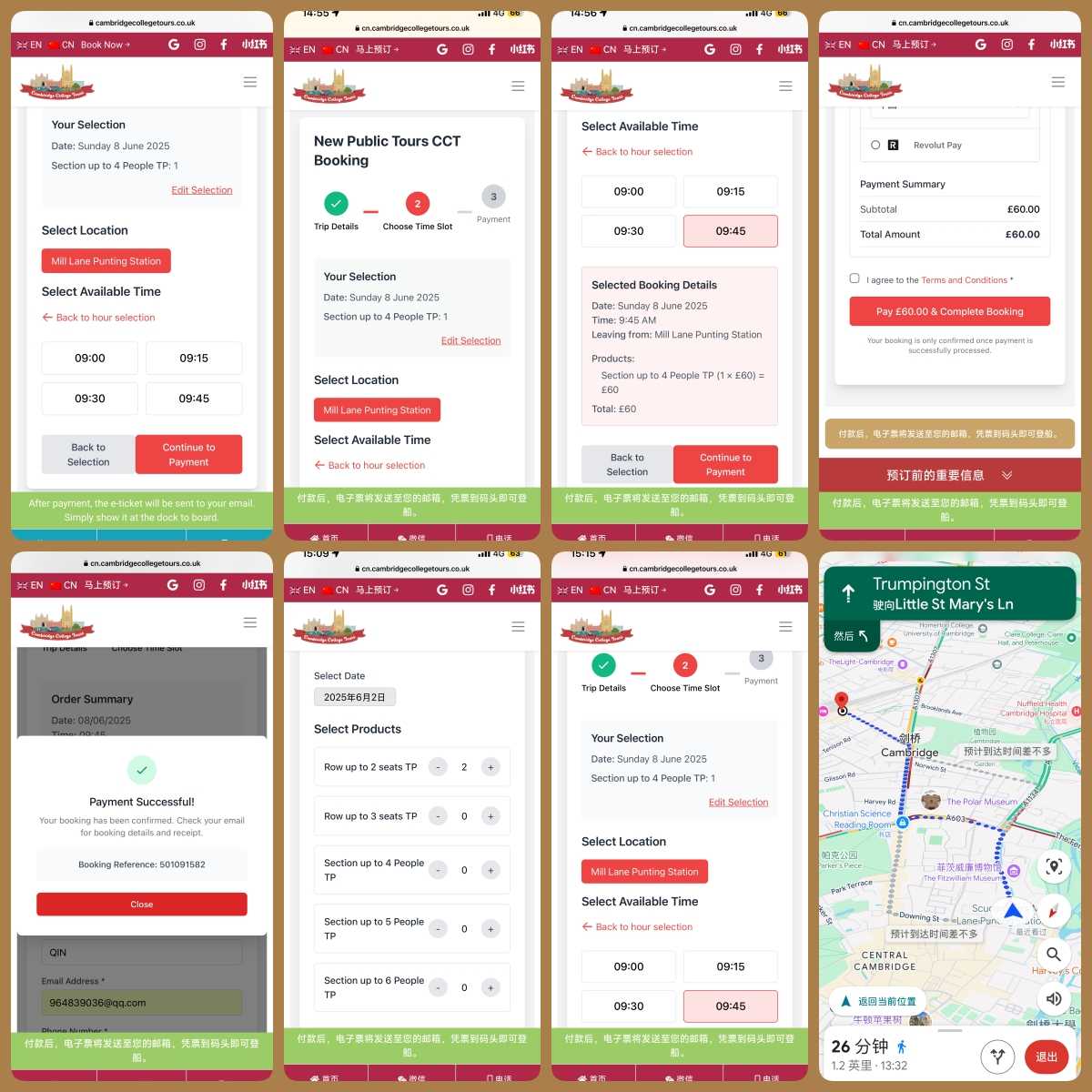 ❷ Cambridge punting: £15/person (£60 for half a boat for four, otherwise £12 pp), 45–60 min. Booked via Cambridge College Tours for Punting SCUDAMORE`S. Location: Scudamore`s, Mill Lane Punting Station, Mill Lane, Cambridge, CB2 1RS. Arrive 15 min early (looks flexible when not busy).