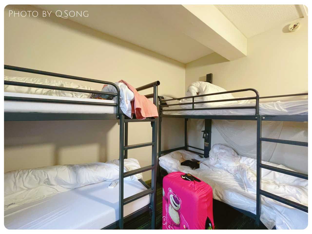 Booked a 4-bed room with two bunk beds, ¥1,940/person/5 nights. Environment was fine; the location was extremely convenient, with many bus stops and two nearby rail stations making travel easy. No public kitchen, but the lobby front desk has a Café Bar (the hot chocolate is nice) offering free hot water and food heating.