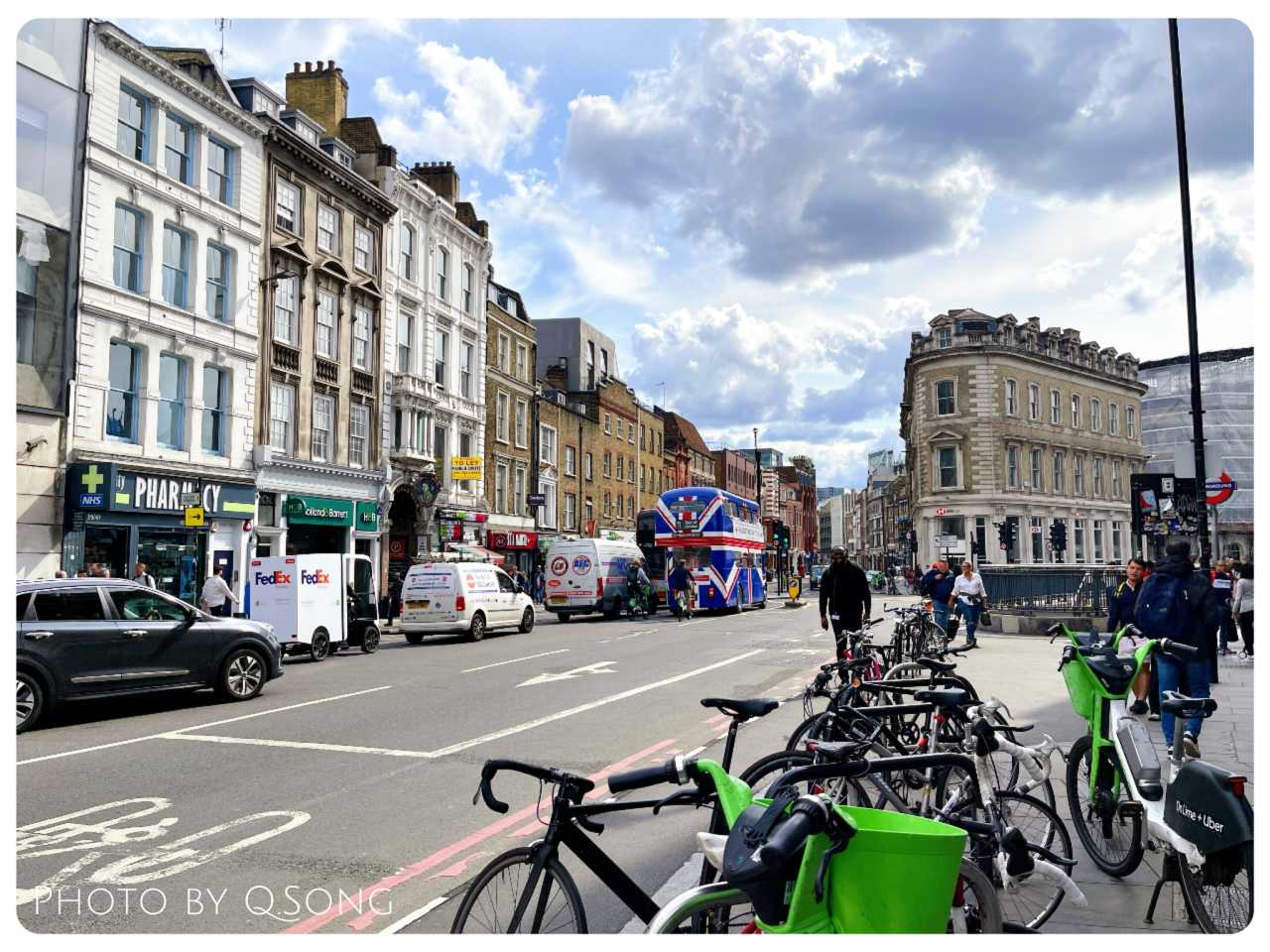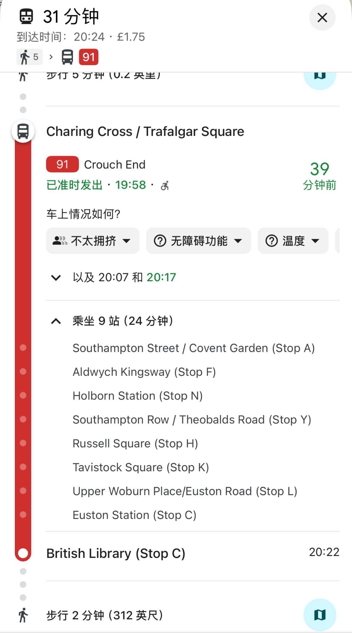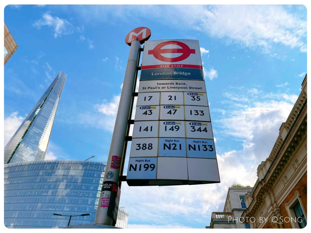 First ride was a bus to Baker Street Post Office. The bus stop opposite is St Pancras Station