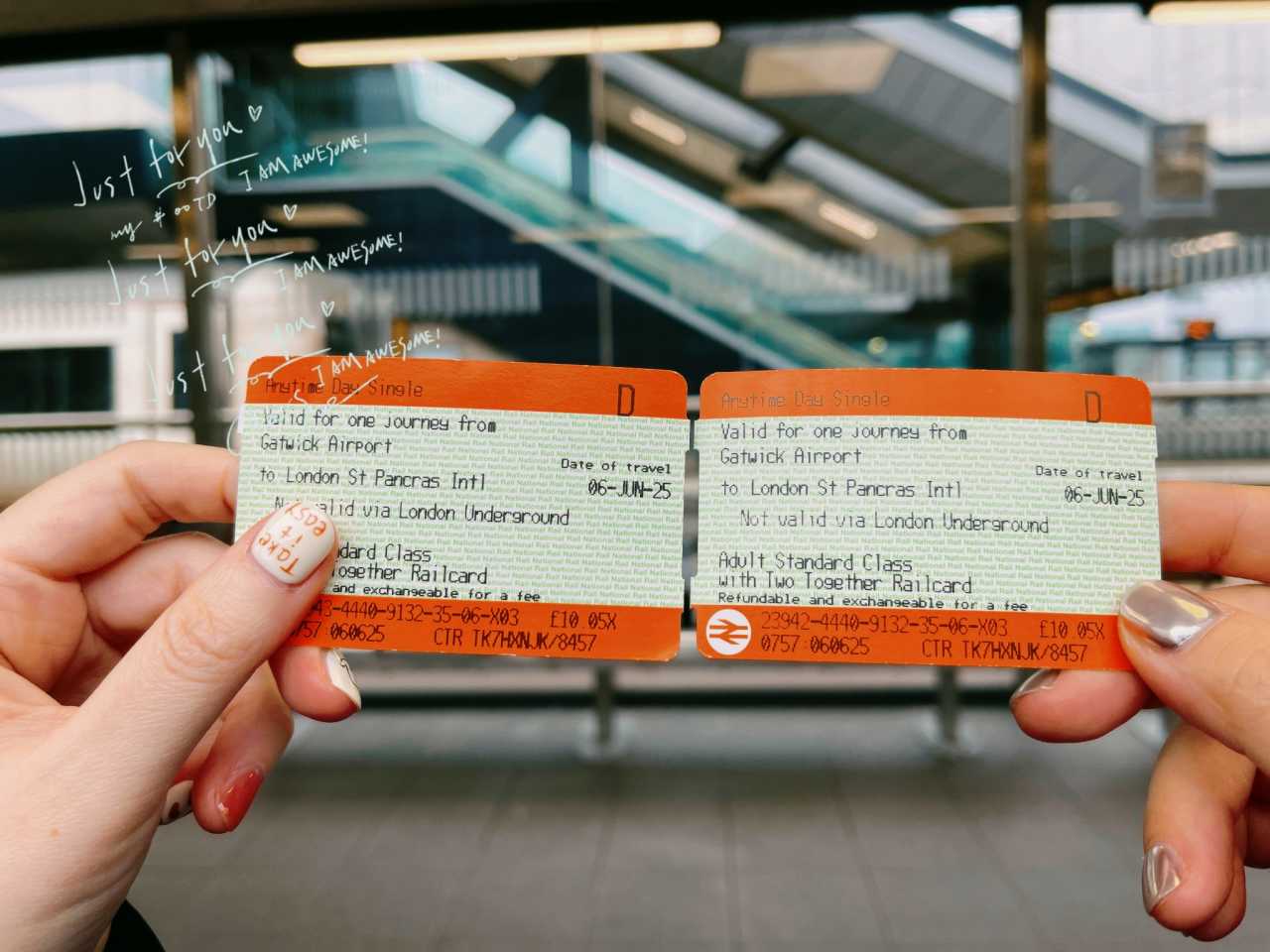 London Gatwick AirportTrain: Gatwick Airport → St Pancras 09:36–10:20, fare £19.08 (✔ On the TrainPal app, you can usually choose e-tickets or paper tickets, but some tickets are paper-only, so you must collect at the station. After purchase, check your order to see if it’s paper or electronic.)