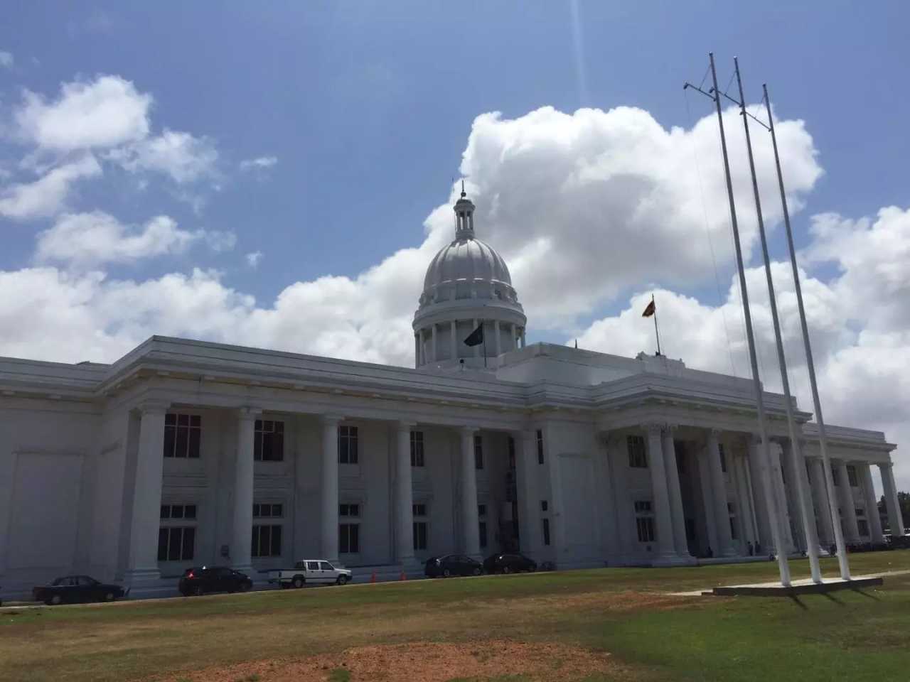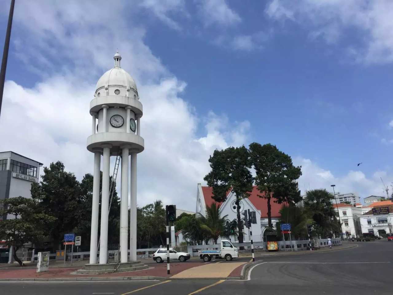 We then drove into Colombo to see the city. As Sri Lanka’s largest city, it may feel noisy to Chinese visitors, but for travelers there are colonial‑era buildings, a clock tower, the national museum, and galleries worth a look. First stop: the Bandaranaike Memorial International Conference Hall (BMICH), sometimes called Colombo’s “White House,” built with Chinese aid; it’s not open to the public. Opposite is Viharamahadevi Park and the City Hall complex. In central Colombo, the BMICH is grand and iconic: a 16,000‑square‑foot hall, 400 telephone lines, and a new library. The octagonal plan features an outer colonnade of 48 white marble columns, deep eaves, and lattice walls—light and tropical in character. Built in the 1960s–70s as a gift from China (decision in 1964, completed May 1973), it has served Sri Lankan public life for over 30 years, akin to China’s Great Hall of the People and hailed as a symbol of China–Sri Lanka friendship. Nearby stands the Chinese Embassy—two buildings mirroring each other, symbolizing close ties. The skyline isn’t very tall, though new high‑rises are being constructed—our guide said many are Chinese‑funded. During President Xi and Peng’s visit last year, they also supported a grand theater reminiscent of Beijing’s Bird’s Nest.