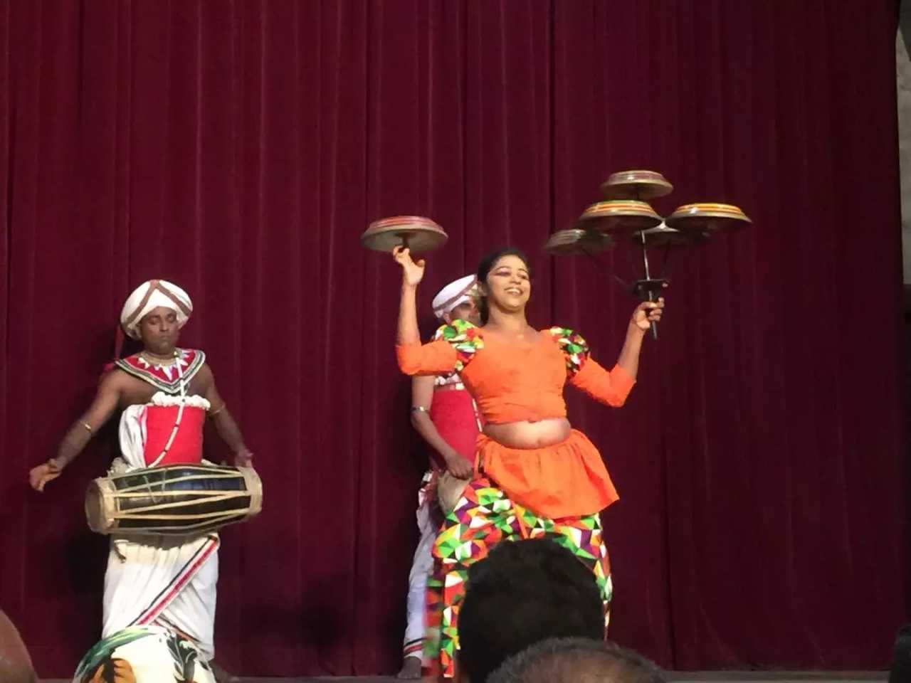 In the evening we watched traditional Sri Lankan dance. Sri Lanka, ancient Sinhala—or Ceylon—has a vibrant dance heritage. Kandyan dance is the best‑known form, accompanied by powerful drumming, with flowing hand gestures and spinning movements. The main traditions are Kandyan (highland), Low Country, and Sabaragamuwa. Many performances derive from the Kohomba Kankariya ritual; Kandyan culture’s music, song, and dance are closely linked to it. The classical repertoire includes the 18 Vannam—poetic‑musical pieces created in the 18th century under King Sri Rajadhi Rajasinha—each with fixed rhythms and choreographic sequences, often imitating animals such as eagle, monkey, horse, butterfly, rabbit, elephant, snake, and peacock. There are also martial drills, somersault dances showcasing male prowess, and devotional offerings.