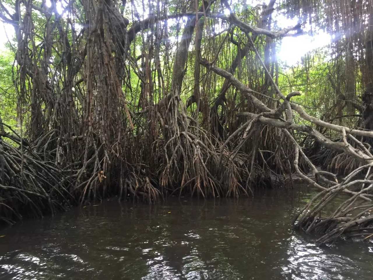 Thursday, Sept 15: we toured a mangrove forest. Mangroves are evergreen woody communities of shrubs or trees that thrive in tropical and subtropical intertidal zones. Special adaptations include buttress and prop roots to resist waves, and pneumatophores—finger‑like aerial roots—for breathing at low tide; many species show vivipary, with embryos sprouting on the mother plant before dropping and rooting in the mud. Some species excrete salt through leaf glands, leaving white crystals after drying; others have thick, fleshy leaves to tolerate saline water. Leaf thickness varies with tidal position. Around the tropical world mangroves have similar forms because they are shaped by saline coastal soils. We crossed the mangroves and visited a small village with many coconut‑made handicrafts; I even saw a porcupine—bristling spines, like a giant hedgehog with a piggy face.