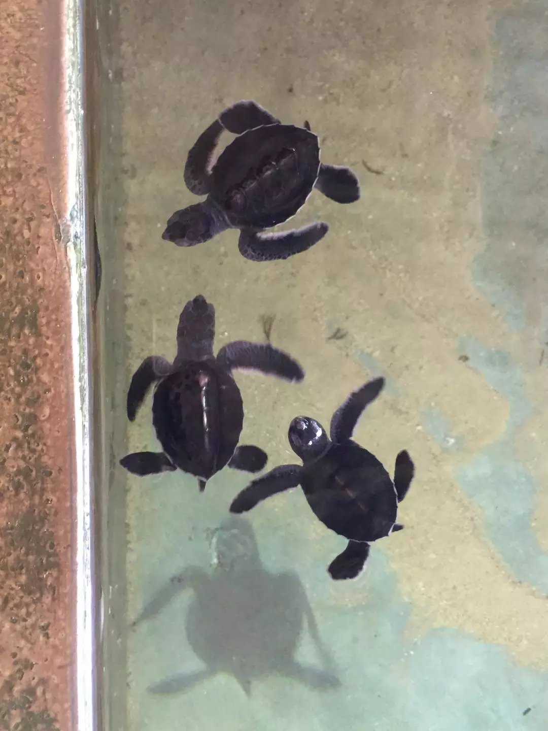 Next we visited a sea turtle hatchery and conservation center. Sea turtles are cold‑blooded; when I held a hatchling its energy was palpable—four flippers wiggling non‑stop. The center looks simple but provides a safe haven for injured or elderly turtles. During hatching season hundreds of babies swim back and forth in the tanks. Staff explained that the tanks are arranged for 1‑, 2‑, and 3‑day‑old hatchlings to acclimate to seawater and practice swimming, so their fragile shells can withstand the ocean; many staff are volunteers.