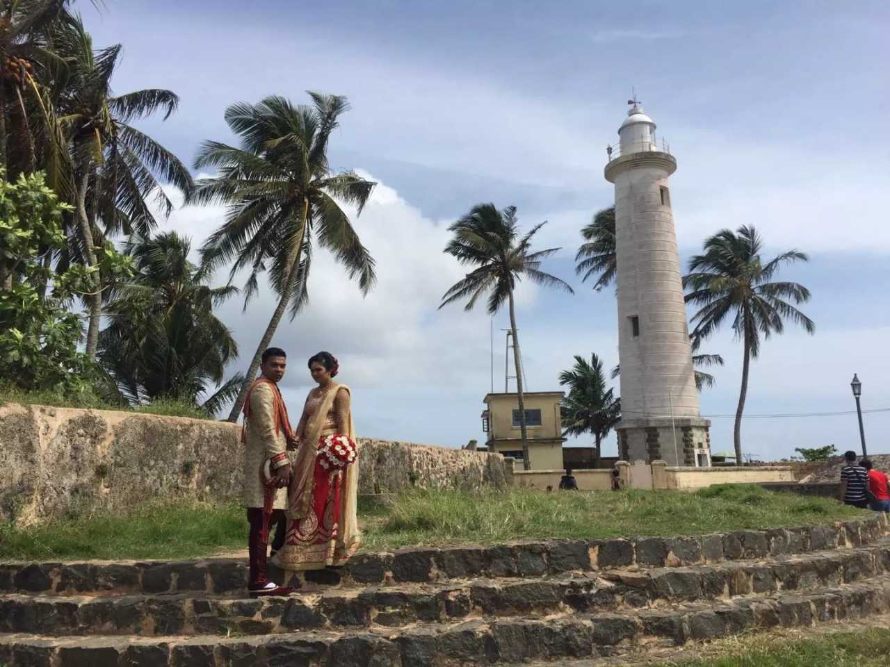 That night we checked into the Mount Lavinia Hotel facing the beach—powder‑fine sand and a boundless sea, a lovely view. Coconut palms line the terrace. At dusk we saw many people swimming and playing on distant sands. It must have been an auspicious day—we arrived to a family dressed for a wedding; after we went out and returned, another wedding was underway there. Attire was elegant and colorful, especially the women. Sinhalese wedding customs are unique: after engagement and setting a date, rings are exchanged. On the wedding day, the bride’s younger brother washes the groom’s feet, they tie a “knot of unity,” and break a coconut. The rites conclude when the bride, on the wedding dais, wears the flower cloth around her waist and a fish‑shaped hairpin from the groom. In the central highlands, polyandry still exists. Mount Lavinia Hotel—beautiful from every angle. Sitting quietly on the balcony with waves crashing and palms shading—“facing the sea, with spring’s flowers” feels too mild to describe it…