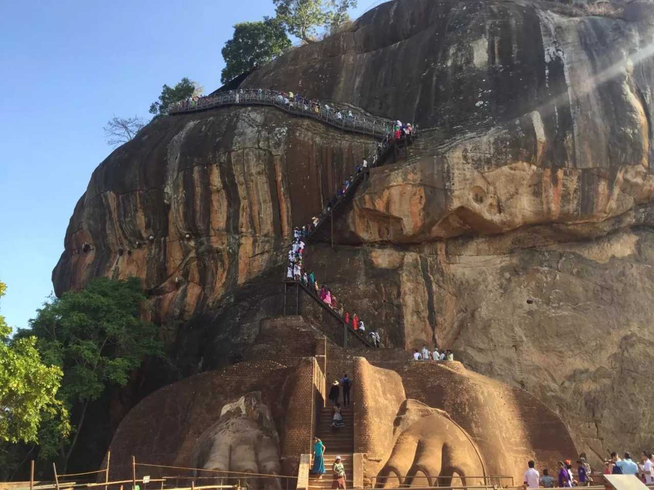 Sunday, Sept 11: after breakfast we drove to Sigiriya to visit Lion Rock. Its origin has a story: King Kashyapa I seized the throne in 477 CE after killing his father. His half‑brother Moggallana fled to India. To avoid retaliation, Kashyapa chose an isolated monolith ~70 km from the capital—Sigiriya—to build a palace and fortress on a rock that was easy to defend. Lion Rock rises abruptly from the plain to ~370 m. Legend says Kashyapa built his citadel here; corridors and stairs made of lime, brick, and clay extend from the mouth of a colossal lion, allowing people to ascend to the ancient city. Sigiriya is a jewel of Sri Lankan ancient culture. After nearly a decade of construction, Kashyapa created a sky palace of ~20,000 m² atop Lion Rock—both pleasure palace and stronghold. Below the rock lies the royal garden, said to be among the world’s oldest landscaped gardens, divided into water gardens, boulder gardens, and terrace gardens. Walking the site, the “city” feels modest, but from above it’s expansive: a square moat encircles Lion Rock; the east and west city areas stretch ~3 km east–west and ~1 km north–south, with two moats and three walls. A quick visit takes < 2 hours; a leisurely one takes half a day. At the base are garden ruins—pools and foundations outlining former buildings. We climbed steep stairs among crowds, viewed frescoes and palace remnants, descended around 18:00, dined, and checked into our hotel…