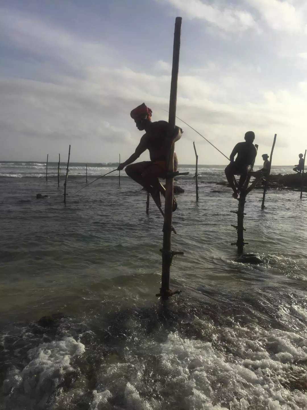 Our last stop today was stilt fishing—the Internet’s most iconic Sri Lanka photo. Though the technique looks ancient, it’s only about 70 years old, born during World War II when food shortages and too many fishermen pushed people to fish in the shallows for sardines. They first stood on shipwrecks, later built stakes on reef. The most famous spots stretch from Koggala to Weligama. It’s striking in pictures, but what we saw was staged: the crew paid fishermen to climb the poles and pose, sitting on narrow crosspieces and casting without bait. For photography, posed scenes are easier than capturing reality, but they lose some of the charm of authentic labor. The Indian Ocean here feels quieter and more demure than the Pacific or Atlantic.