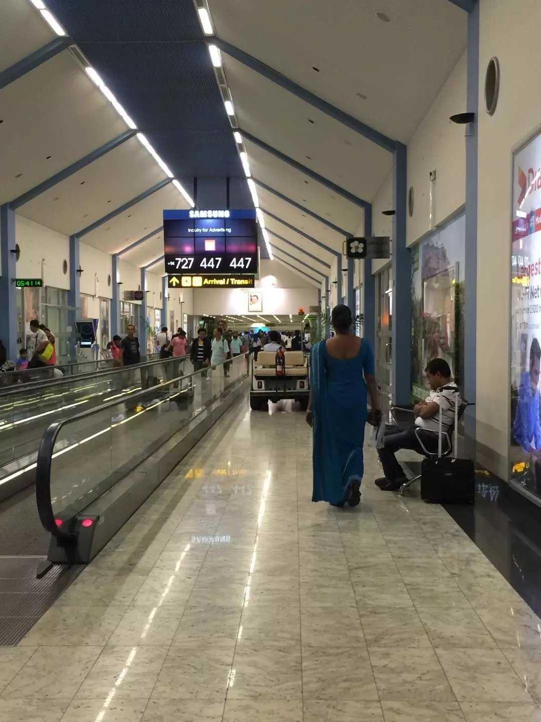 Saturday, Sept 10: after 4.5 hours we arrived in Colombo at 07:53 Beijing time (05:30 local). After queuing for the restroom, at 08:20 we queued for immigration—crowded but efficient. Phones switched automatically to 06:19 local (08:47 Beijing). Dawn was just breaking as our group finished procedures and regrouped. Outside the terminal were currency exchange counters—about CNY 1 ≈ LKR 20. Most airport staff were men in navy uniforms, with darker complexions.