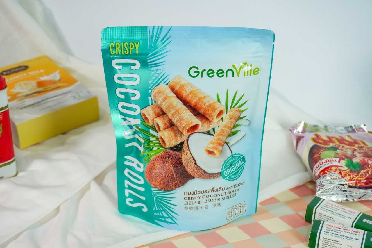 Made from fragrant coconuts from Ratchaburi province, with no MSG added, not fried, and offering a crispy texture. It’s a premium choice among traditional Thai snacks.