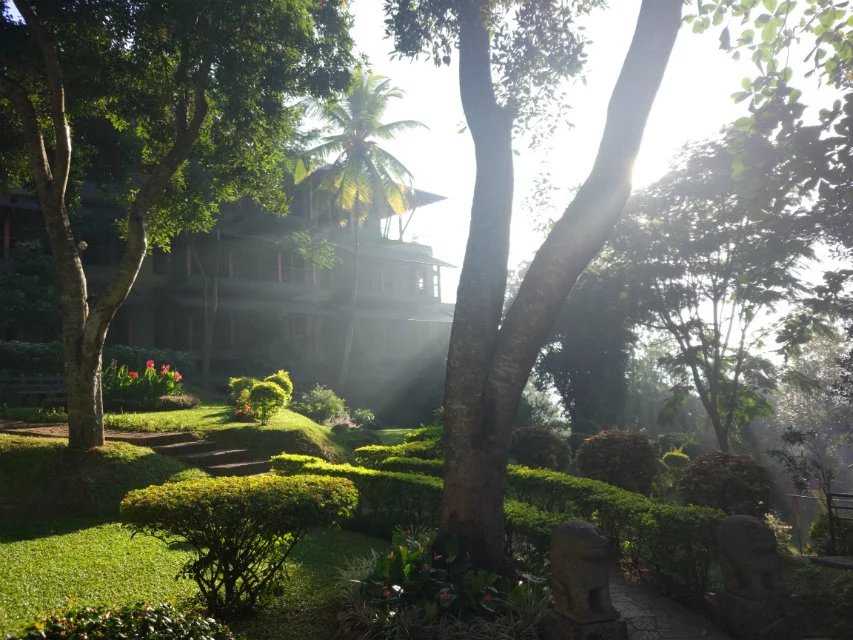 ☆ The entrance feels like a cave, with wild—yes, wild—bats, birds, peacocks, and mongooses hanging around. Front desk staff ignore the resident animals, greet you with “Ayubowan” and offer a white lotus.