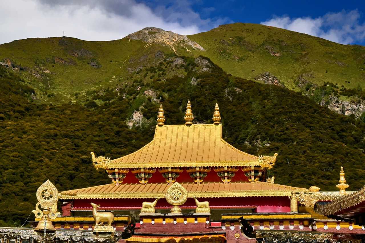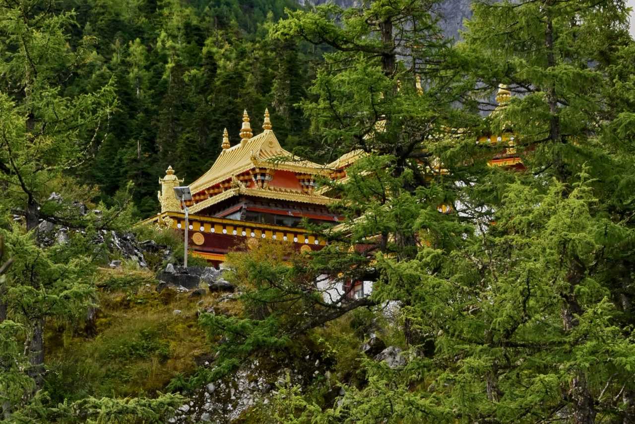 ZhaguanbengFrom the Visitor Center, look up: nearby sits golden-roofed Chonggu Monastery, half-hidden among green shade; above the forest you can glimpse one corner of the massive Xiannairi mountain.
