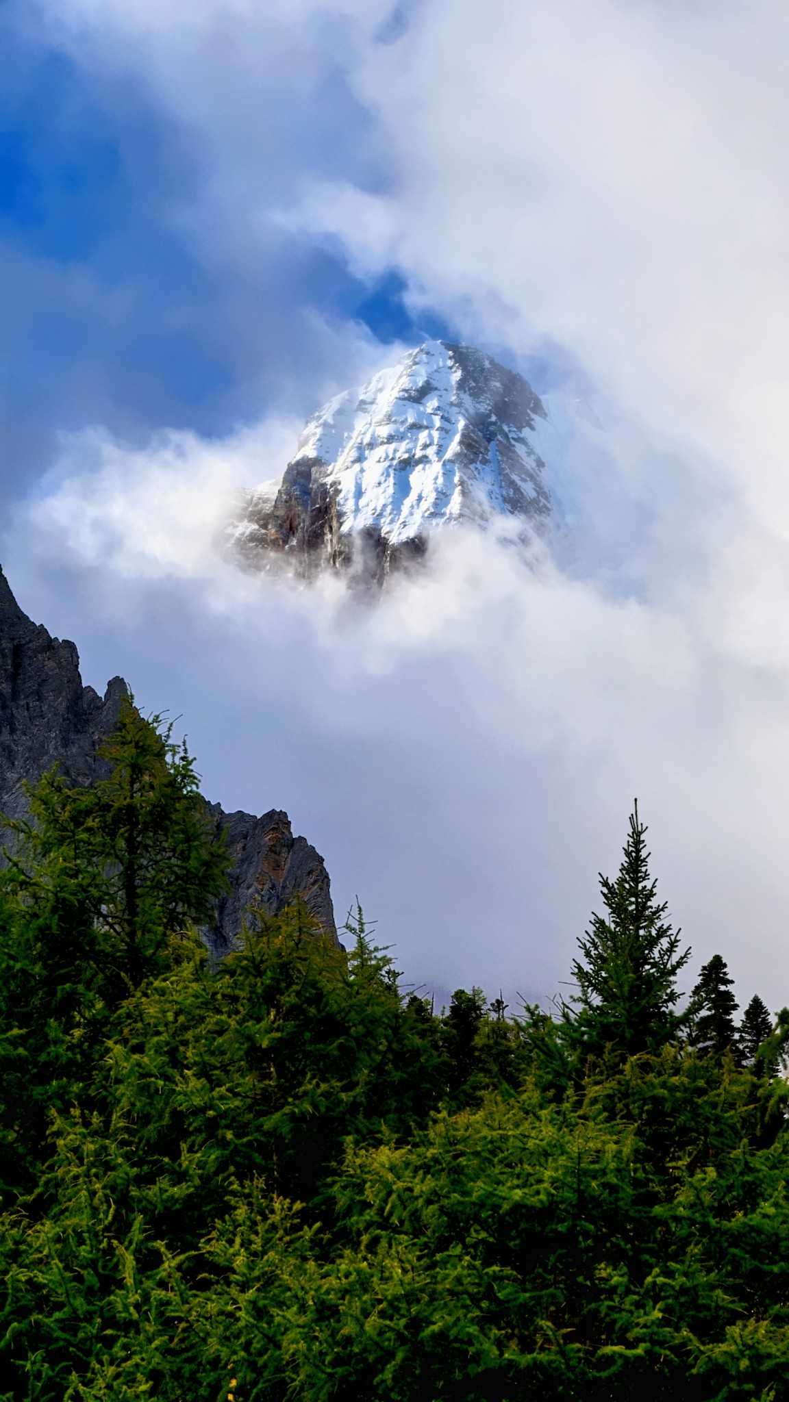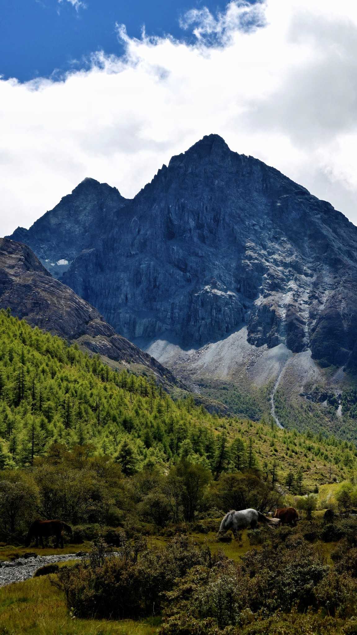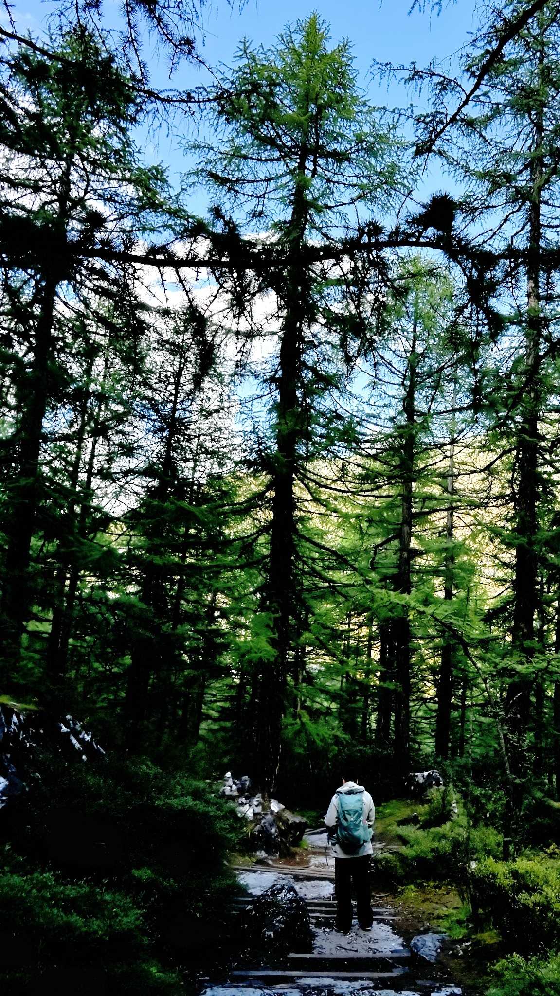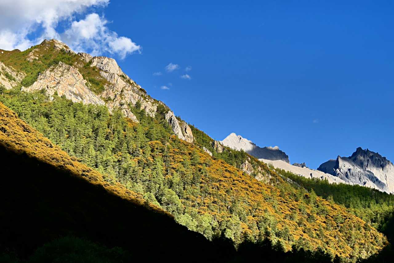 Daocheng Yading Scenic AreaThis segment is truly beautiful; inside it your vision reshapes. At human height looking up, the world is layered—each layer filled by towering fir, spruce, wilderness, massifs, and sky.