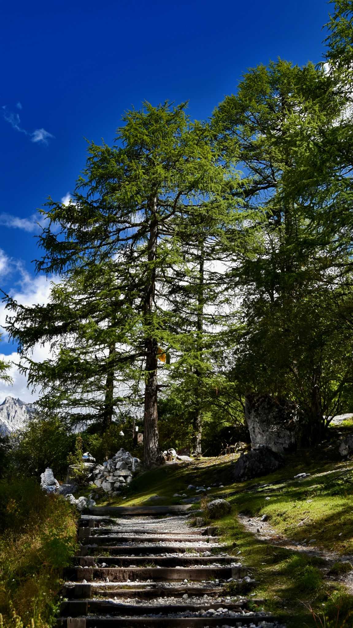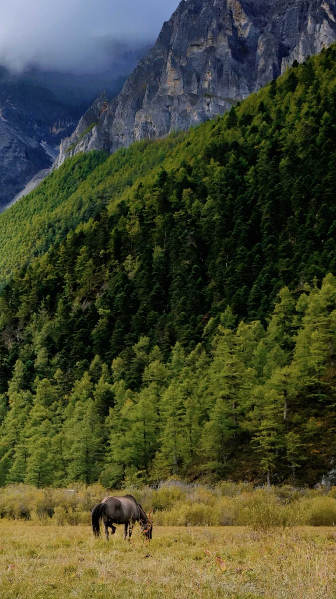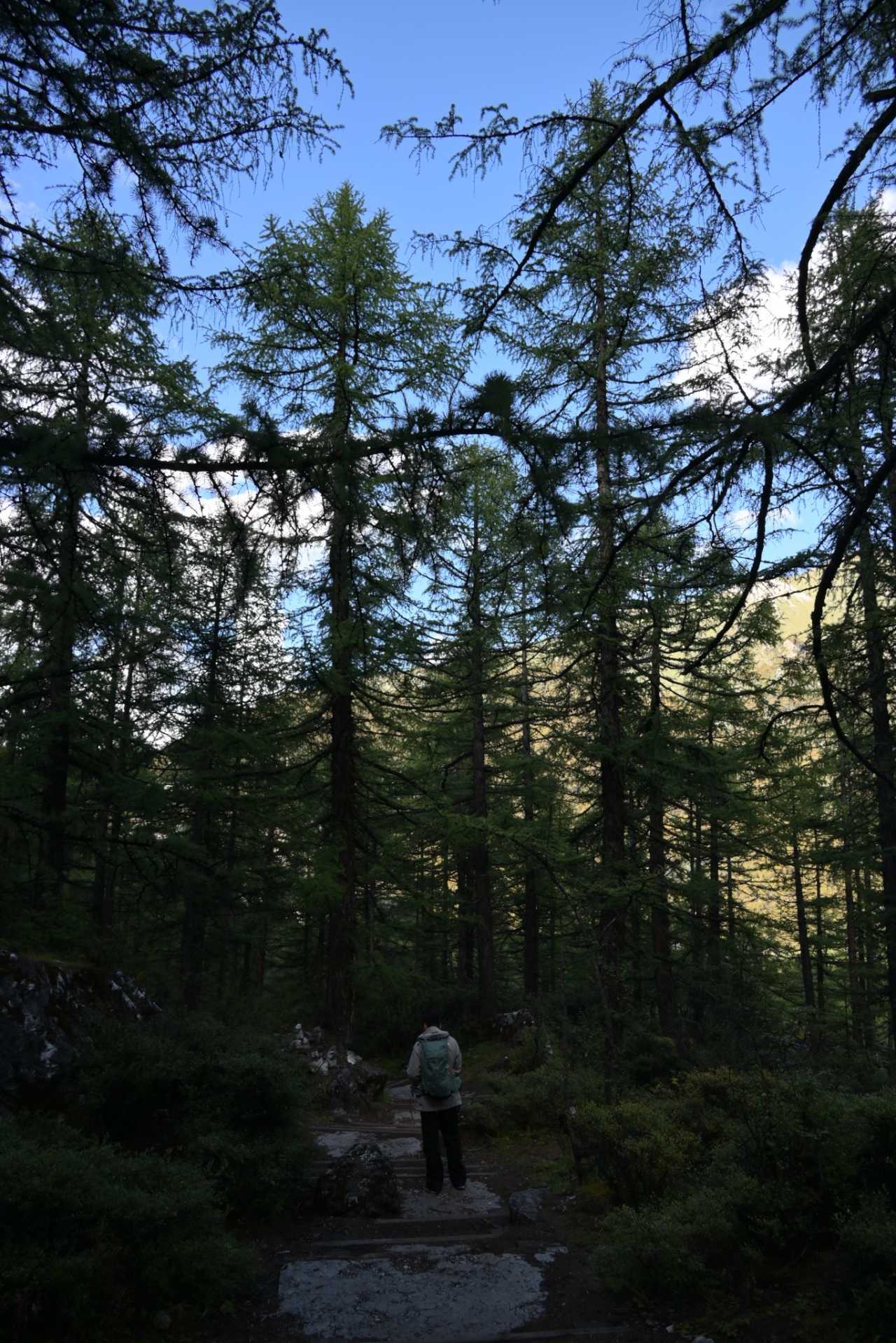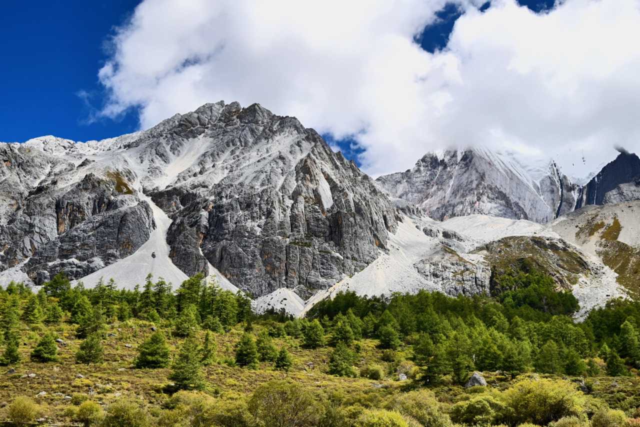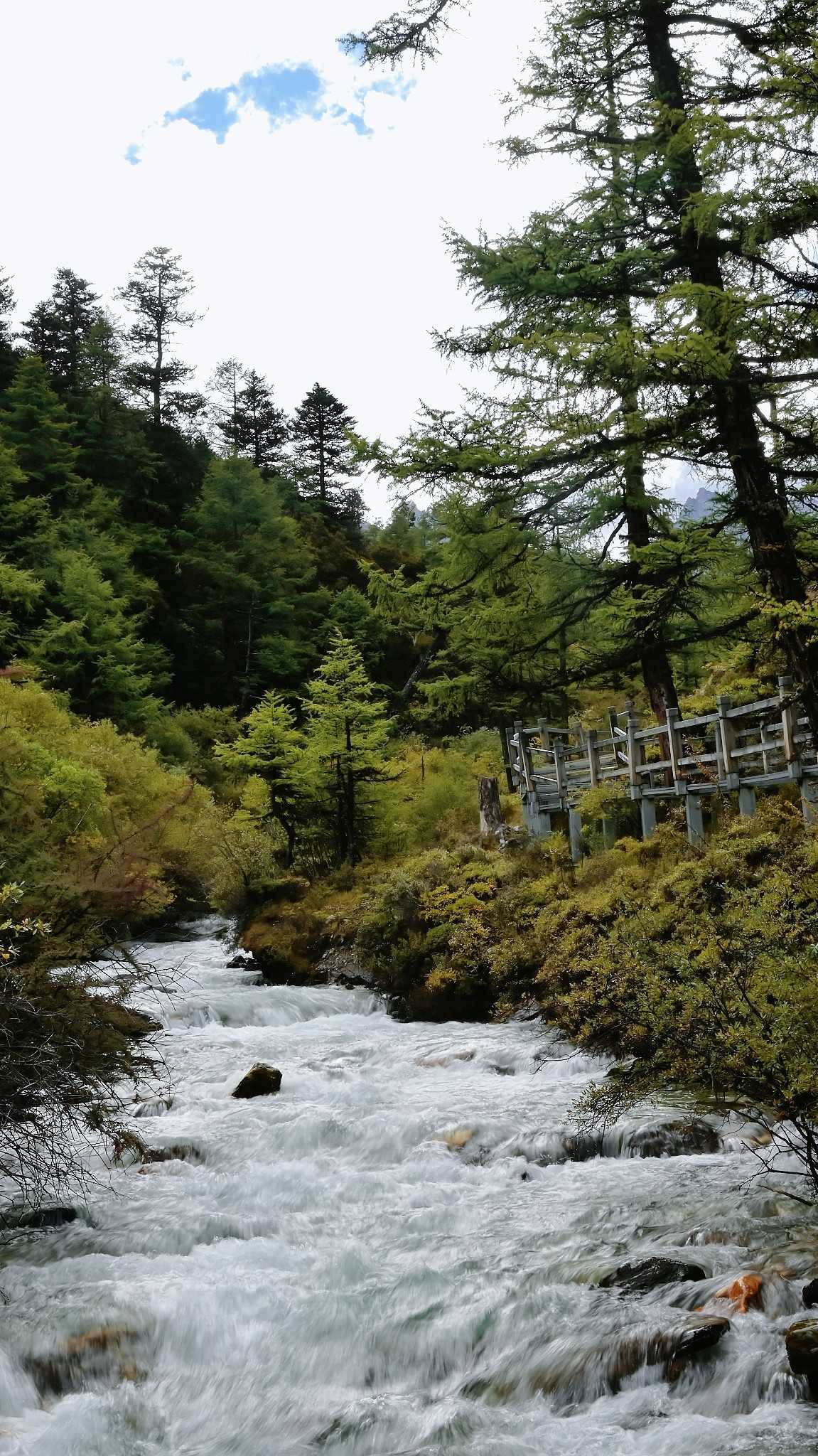 Daocheng Yading Scenic AreaThis segment is truly beautiful; inside it your vision reshapes. At human height looking up, the world is layered—each layer filled by towering fir, spruce, wilderness, massifs, and sky.