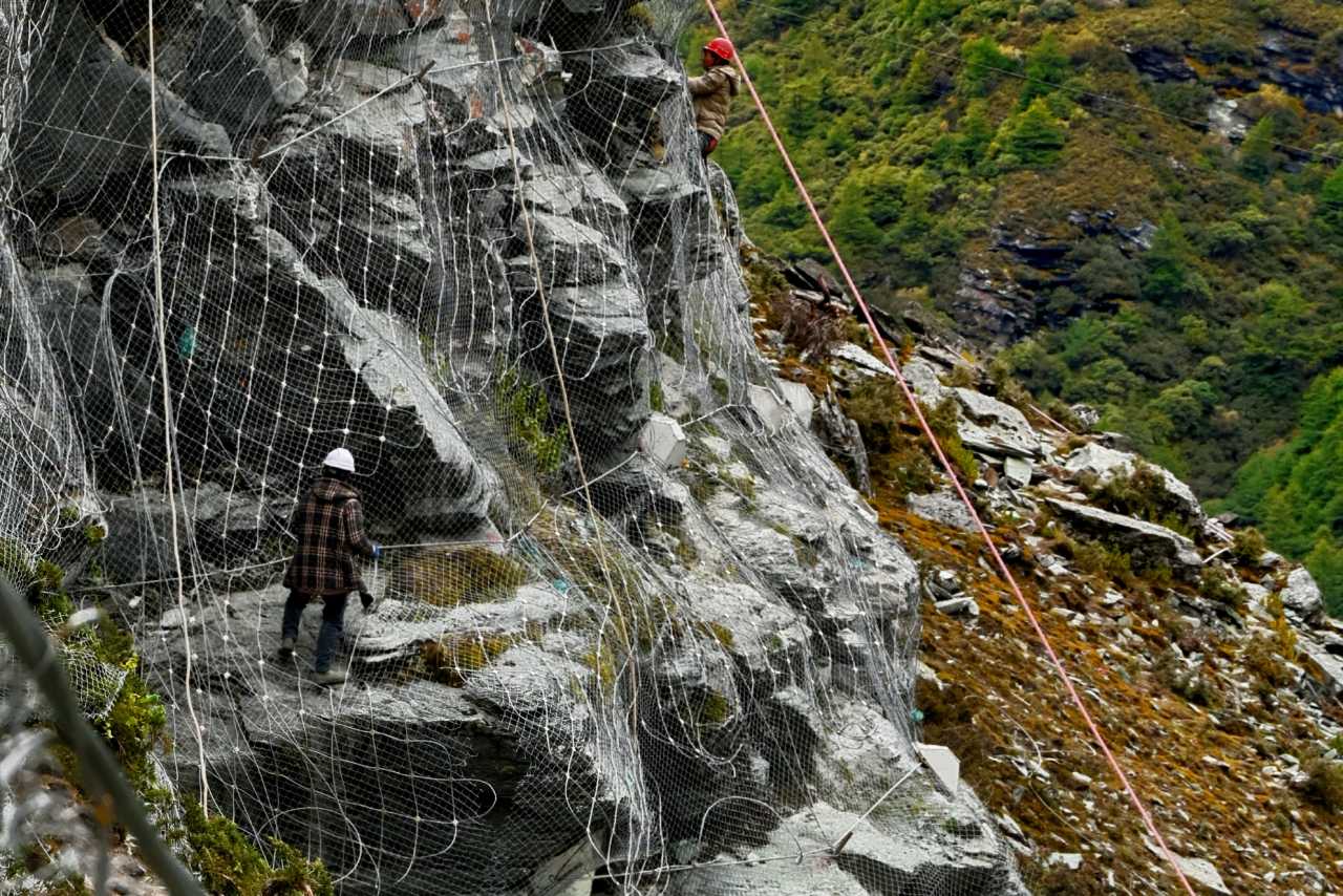 But! Poles help on the Vajra Challenge Line. Though it also has some iron walkways, they’re only ~40%. Most is dirt, mountain paths, real terrain; some sections are under slope-side construction—slippery. The descent is long and steep; having a staff to brace and rest helps a lot.