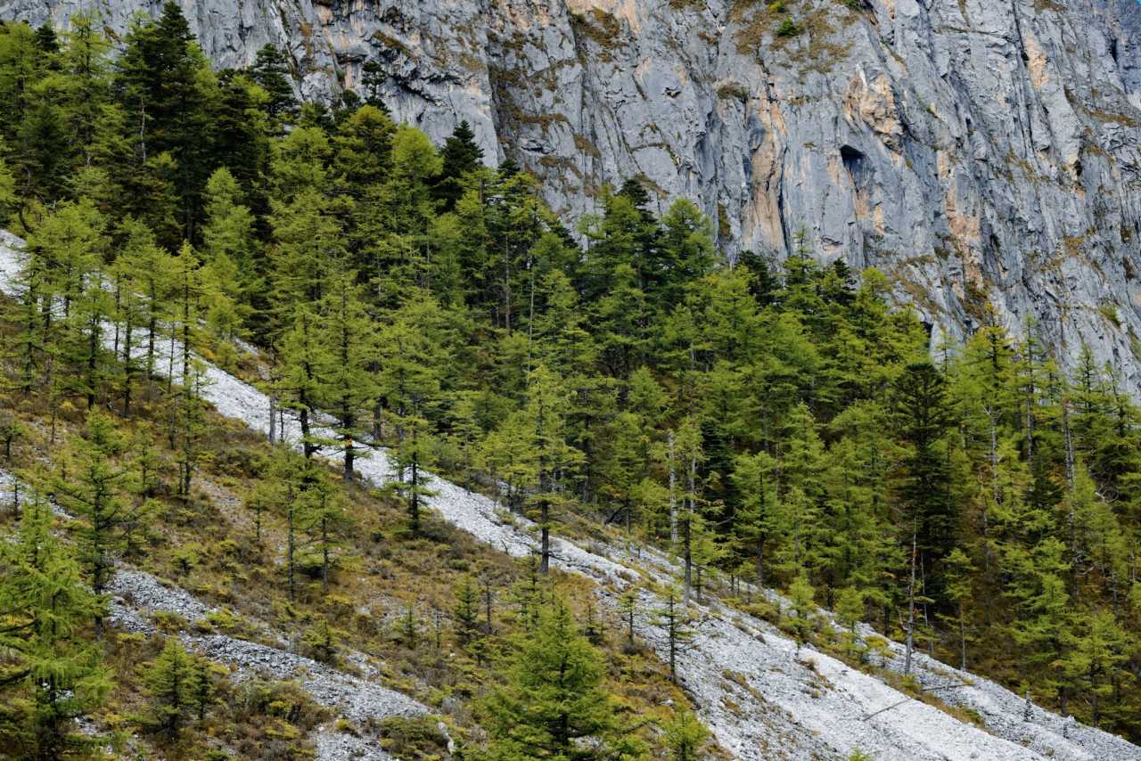 Daocheng Yading Scenic AreaBroadleaf forest with large leaves gradually gives way to fir and spruce—like silent monks in dark green robes, standing orderly on poorer soils.