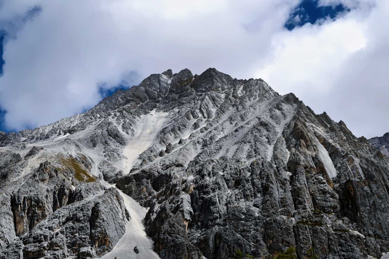 ZhaguanbengFrom Zhaguanbeng you can see “horn peaks.” Horn peaks—pyramidal peaks—form under glacial action. The mountain takes a four-sided pointed shape like an Egyptian pyramid, sculpted by glaciers eroding all sides. Xiannairi, Yangmaiyong, and Xianuoduoji are classic examples—natural “pyramids” carved by glaciers.