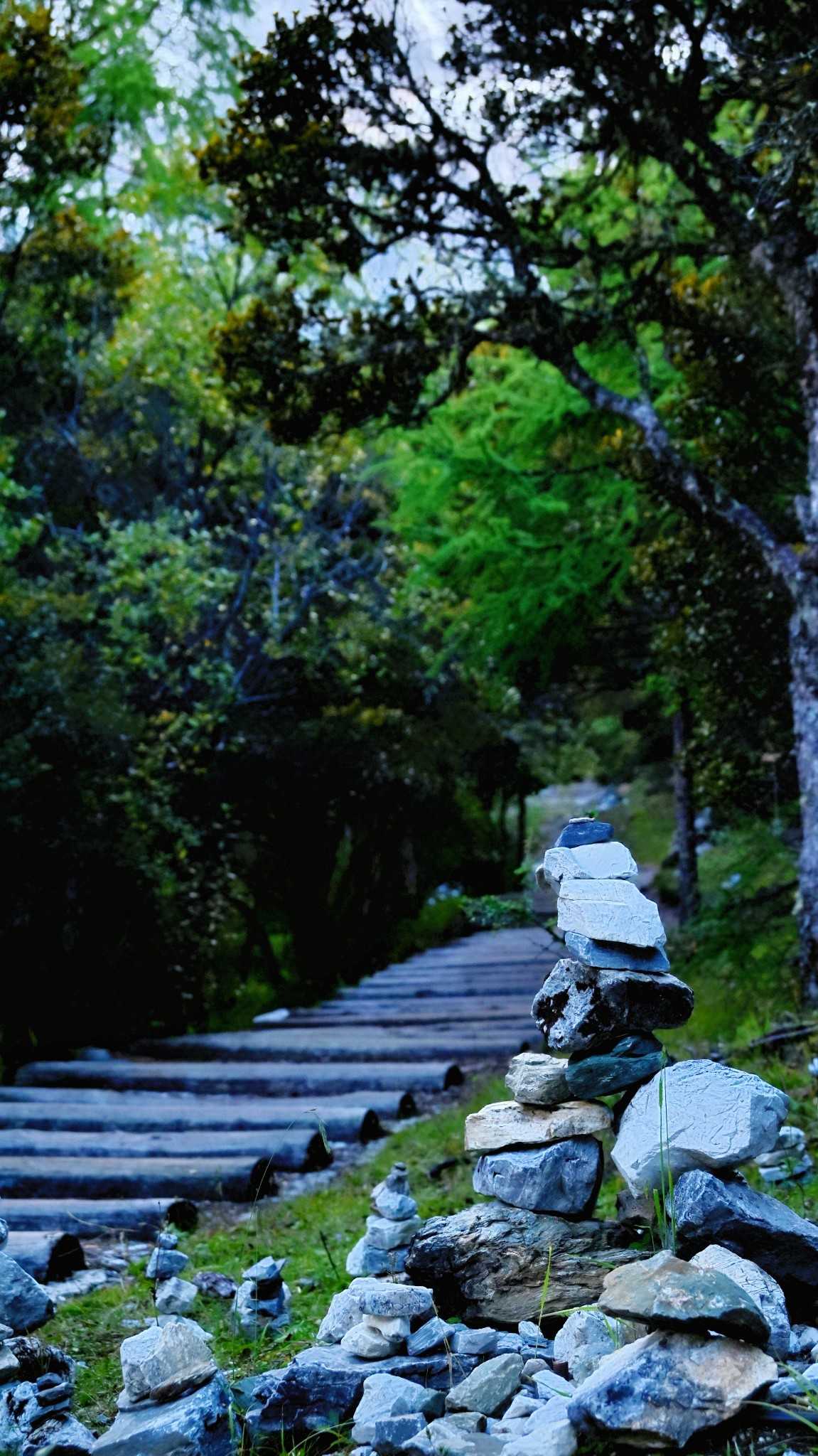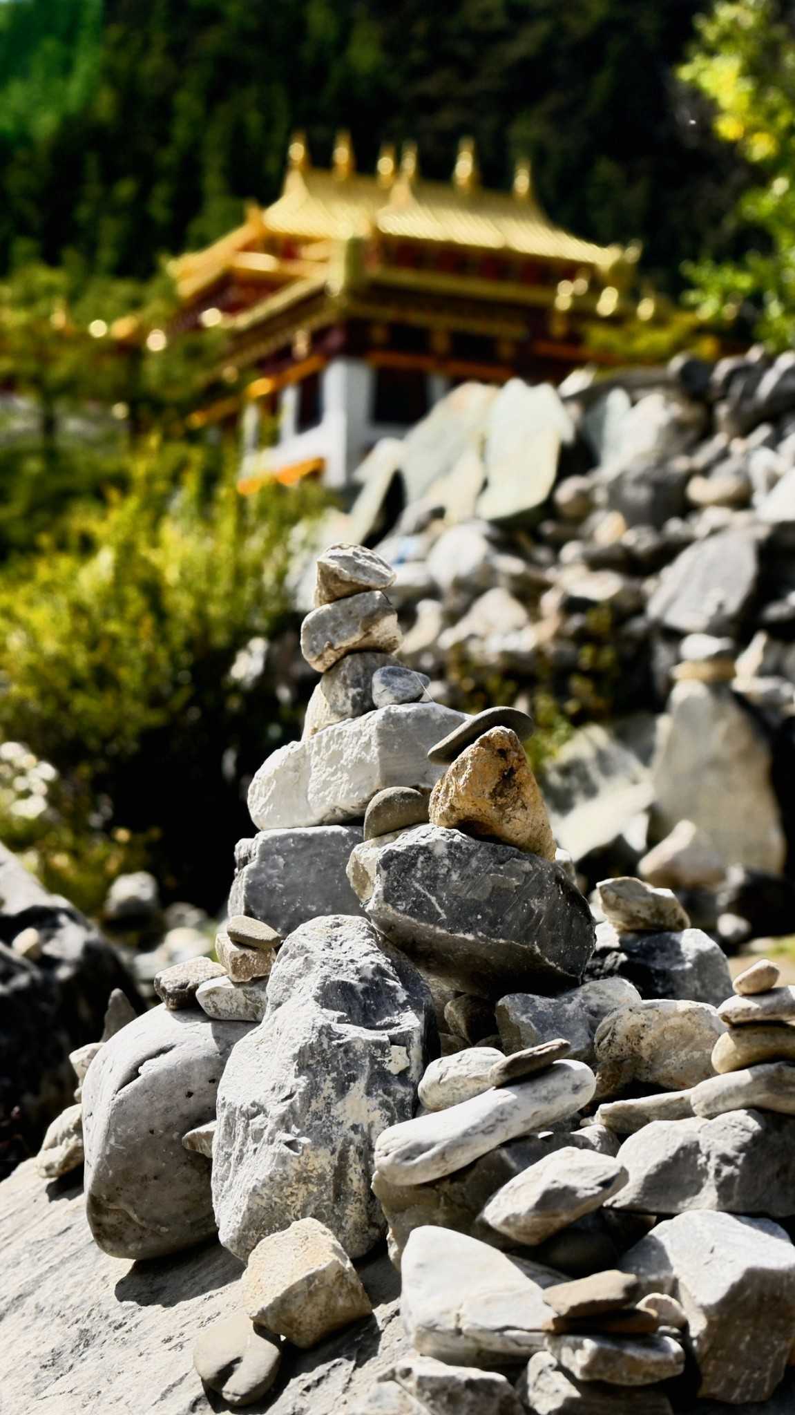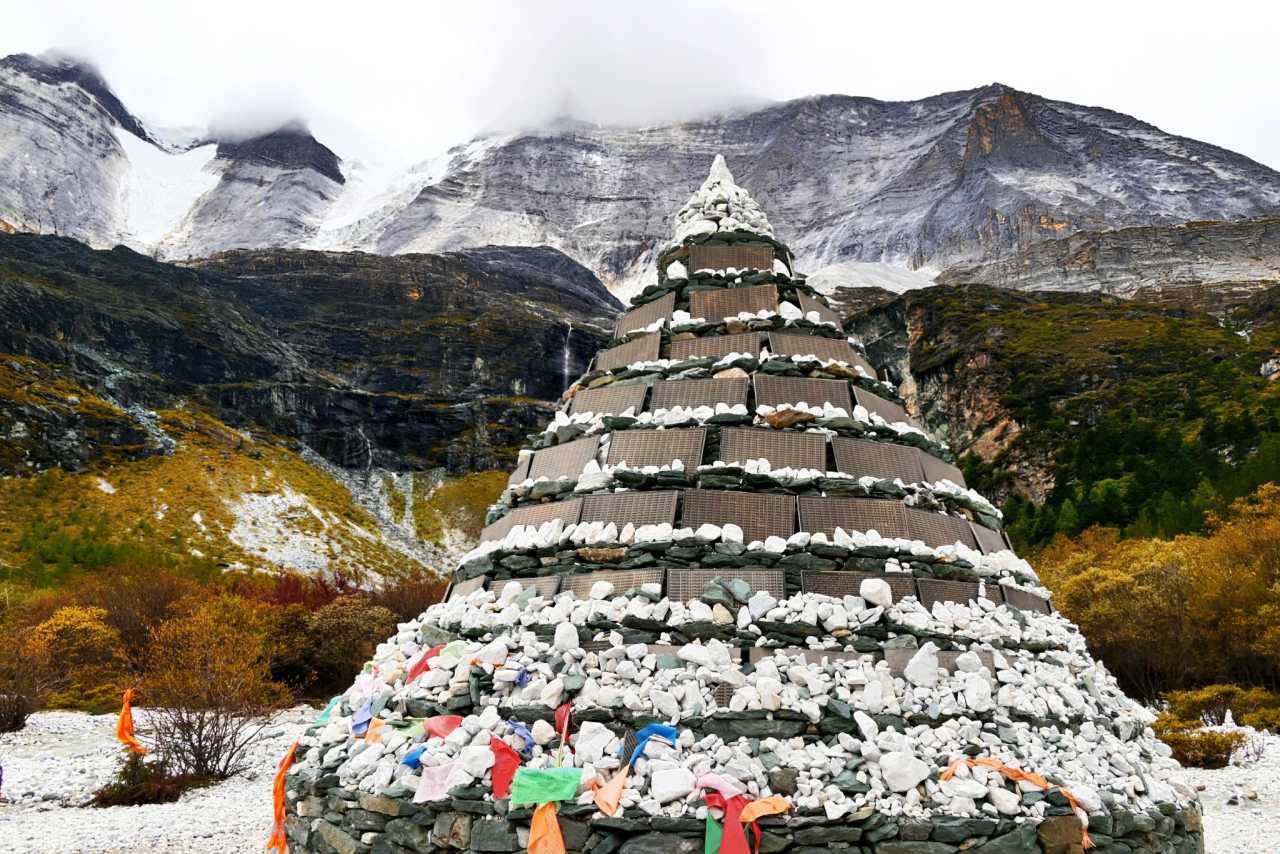 Daocheng Yading Scenic AreaOn stony flats off the walkway, you’ll find mani piles of various shapes and heights, made of flat smooth pebbles carved by water. From afar, they look like a silent forest grown from wishes—each a tiny monument stacked with heart—countless strangers’ solidified footprints.