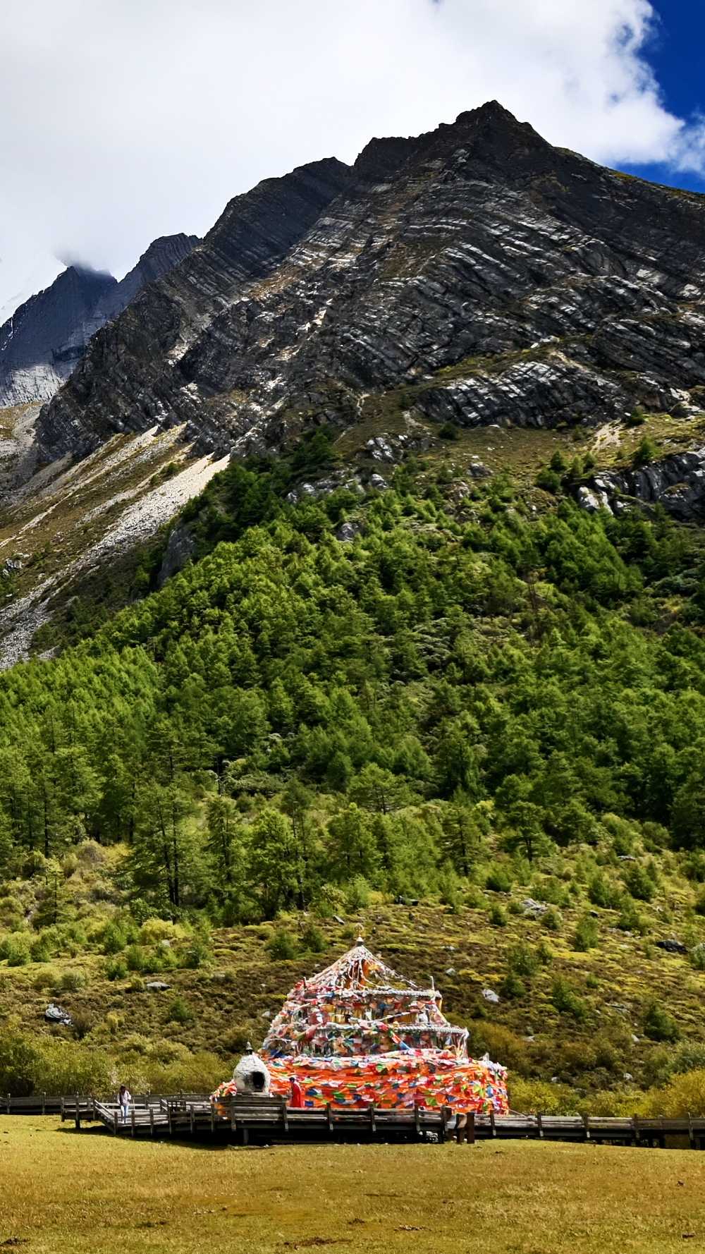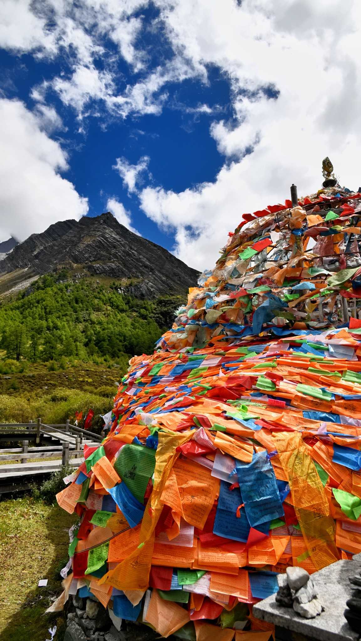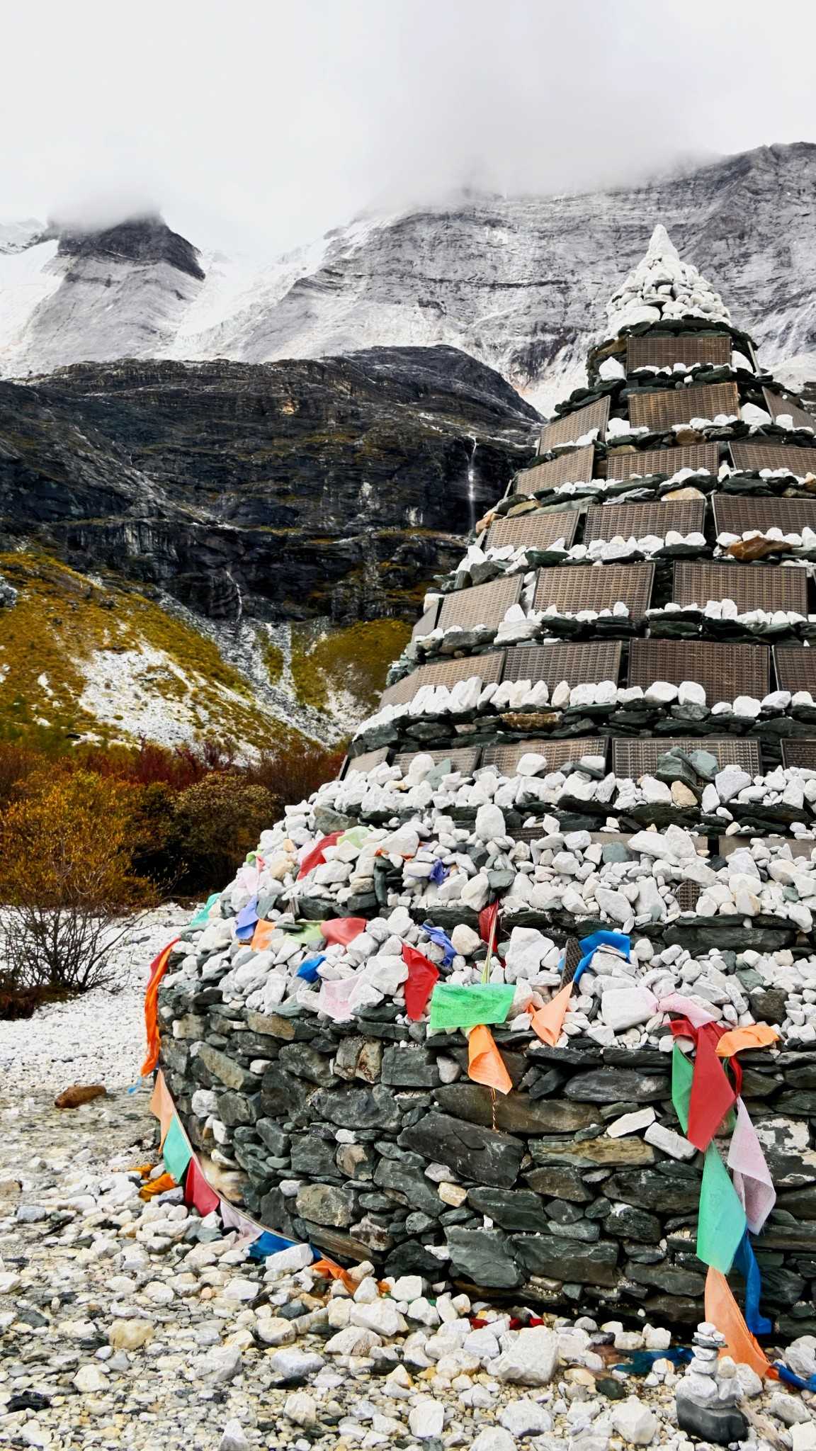 Daocheng Yading Scenic AreaOn stony flats off the walkway, you’ll find mani piles of various shapes and heights, made of flat smooth pebbles carved by water. From afar, they look like a silent forest grown from wishes—each a tiny monument stacked with heart—countless strangers’ solidified footprints.
