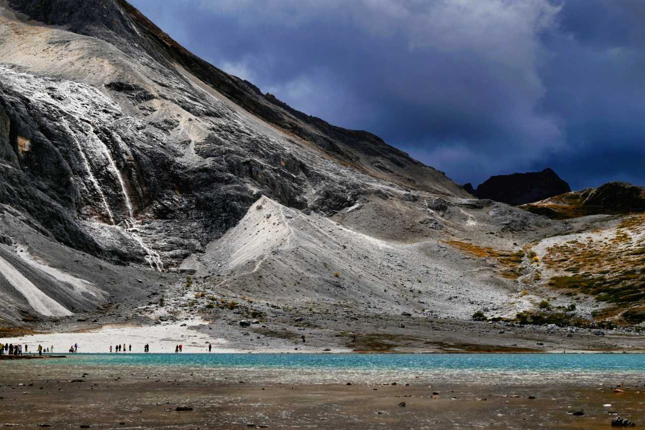 Five-Color LakeBy the time we arrived half-dead, light had dimmed; thick cloud blocked sun—the famed five-color magic didn’t appear.