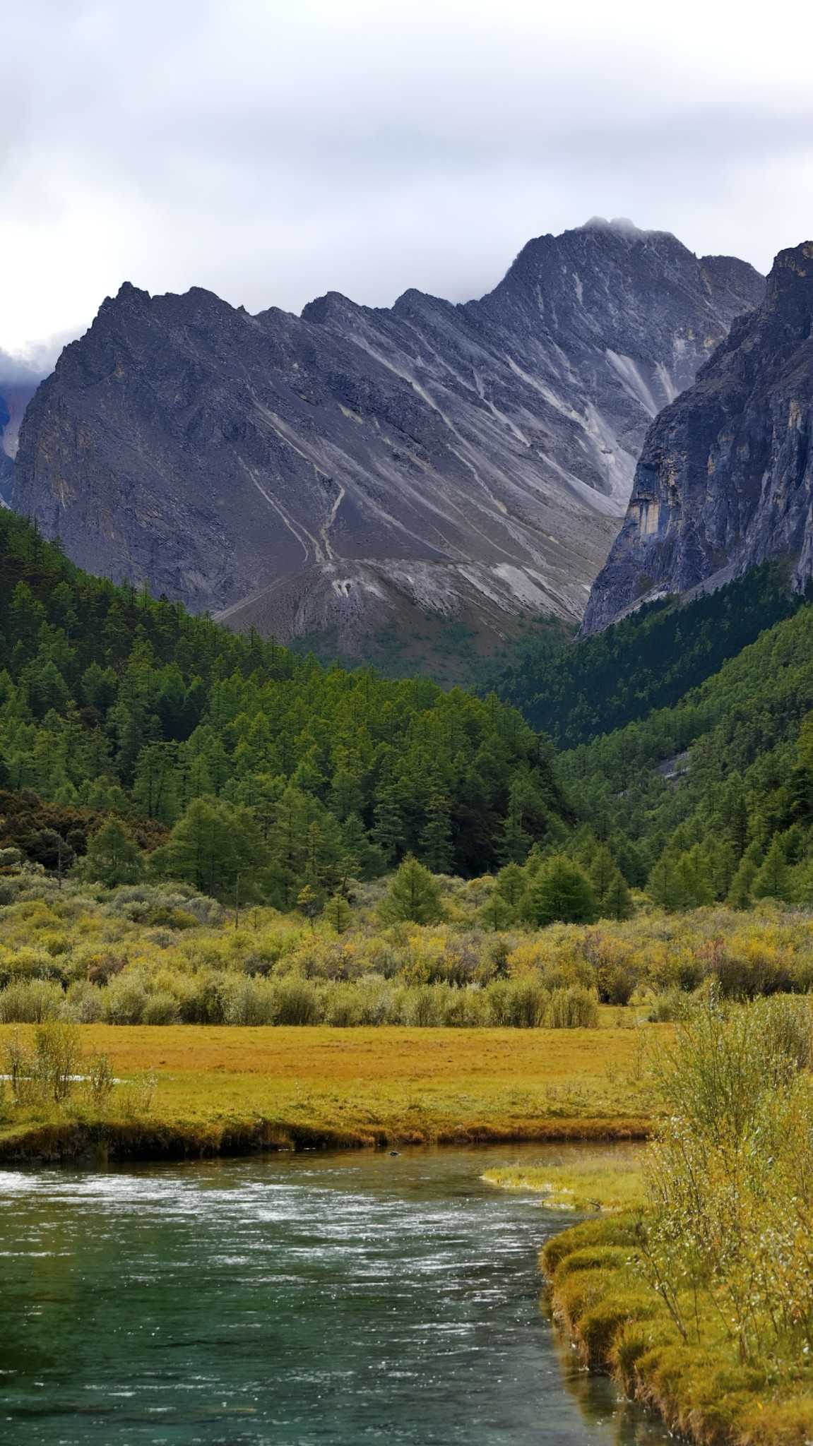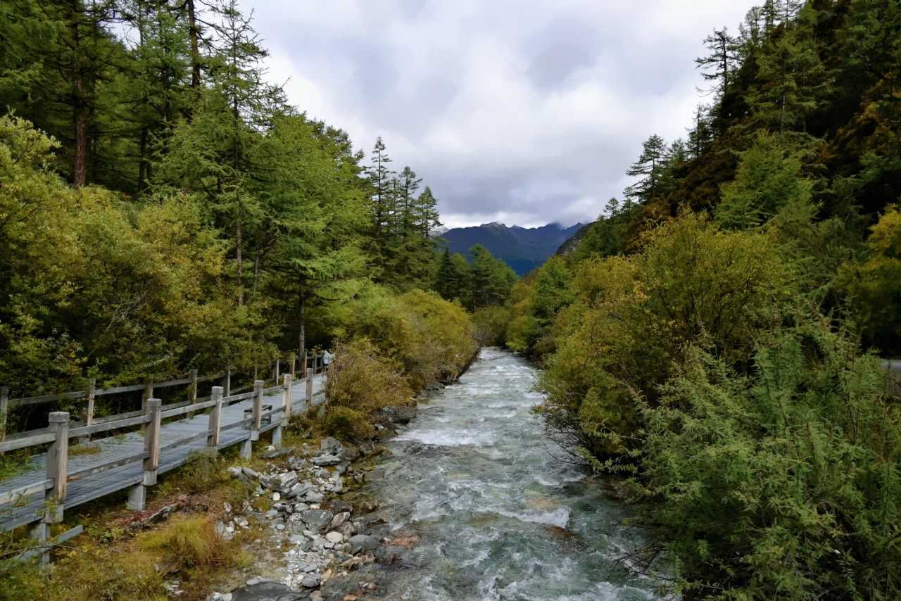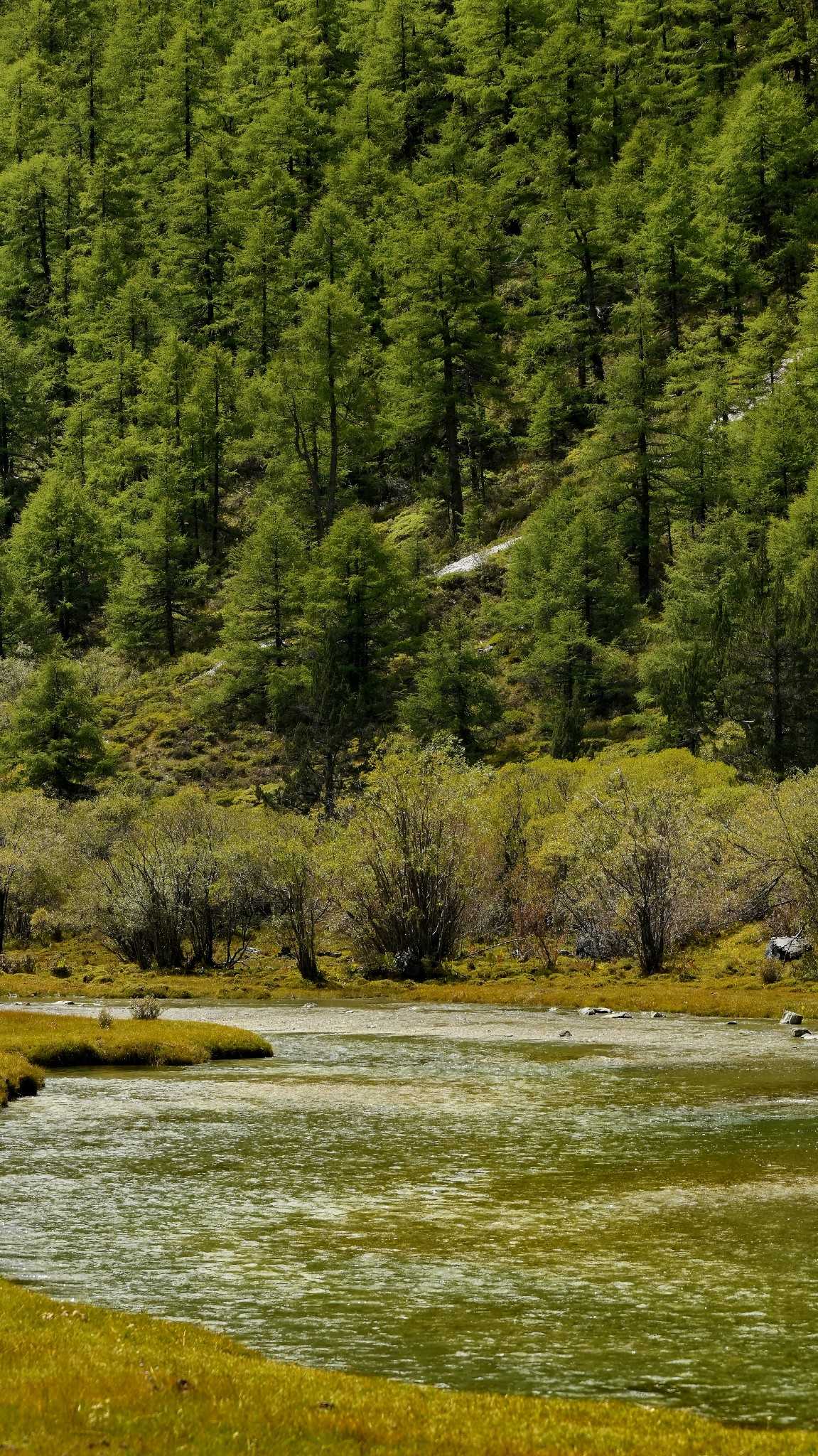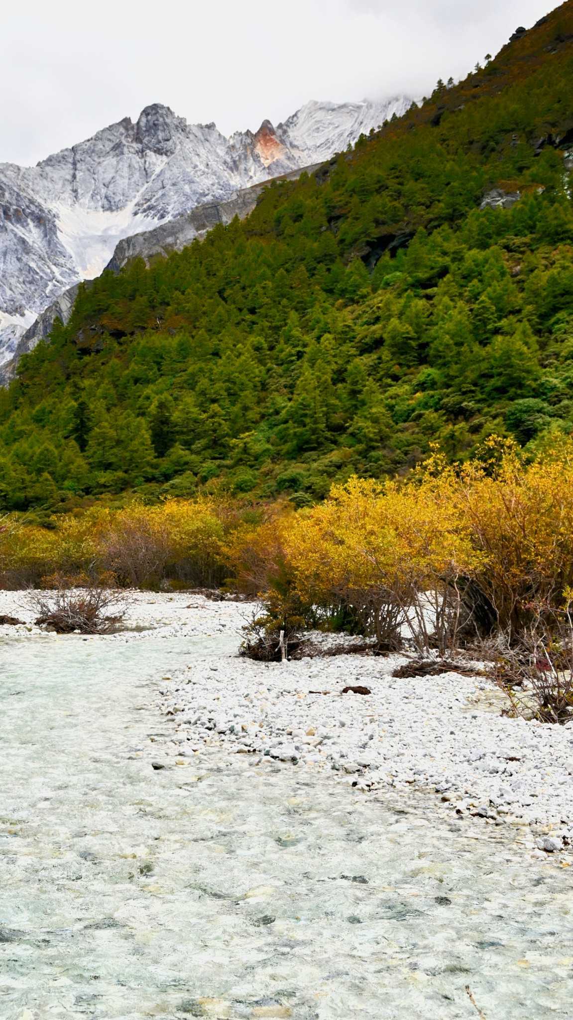 Daocheng Yading Scenic AreaWe moved opposite the flow, facing the snow peaks, ears filled with the cool continuous murmur—a cold, uninterrupted background that deepens the woods.