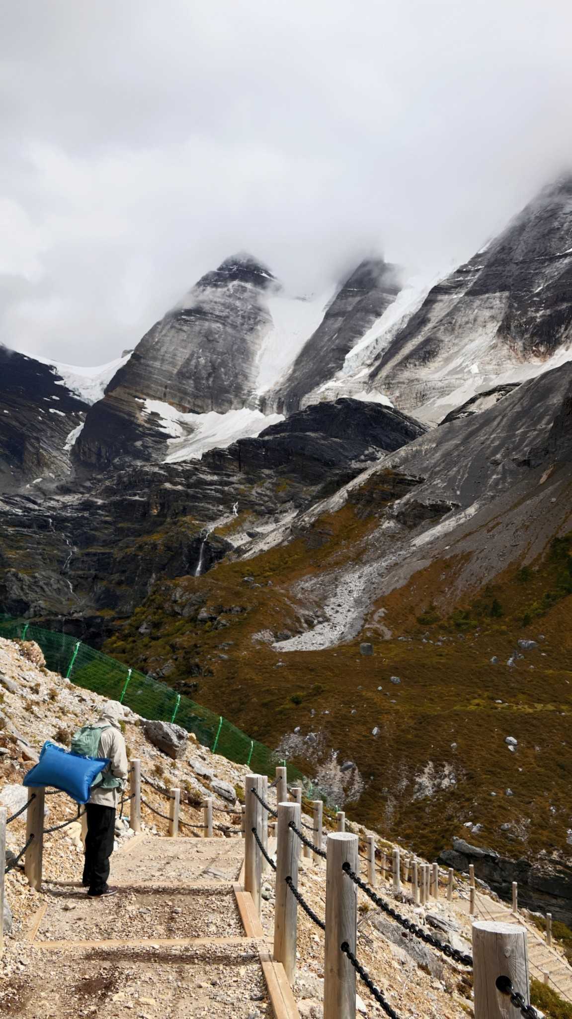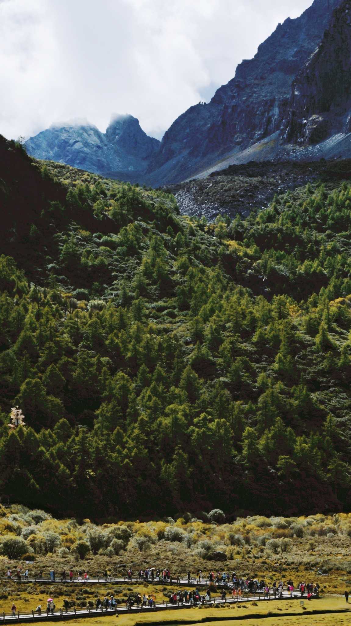 Daocheng Yading – Yading Viewing DeckWe finally fell into the cart seats at dusk. Drivers flew through bends; we had no strength to gasp. The 500 m from Zhaguanbeng to the bus point felt longest—slope pressed full weight on toes; only the shoe front braced hard to avoid sliding down on our butts.