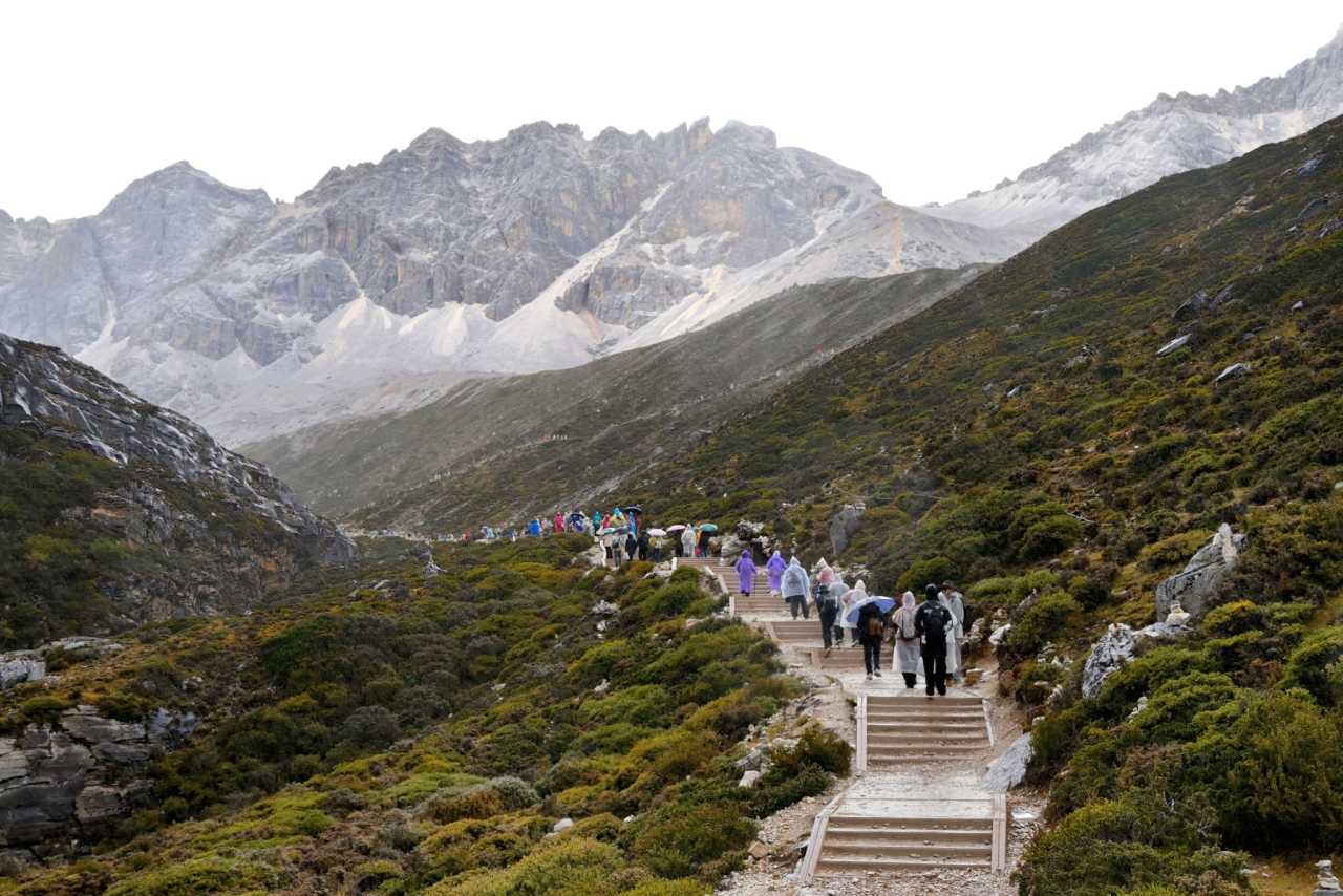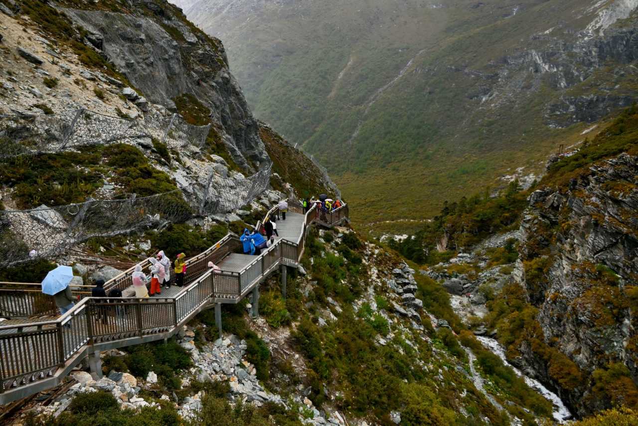 Daocheng Yading Scenic AreaAbout 90% of the walking sections on the Guanyin and Manjushri routes use iron grating boardwalks—slender bars closely joined into latticed plates.